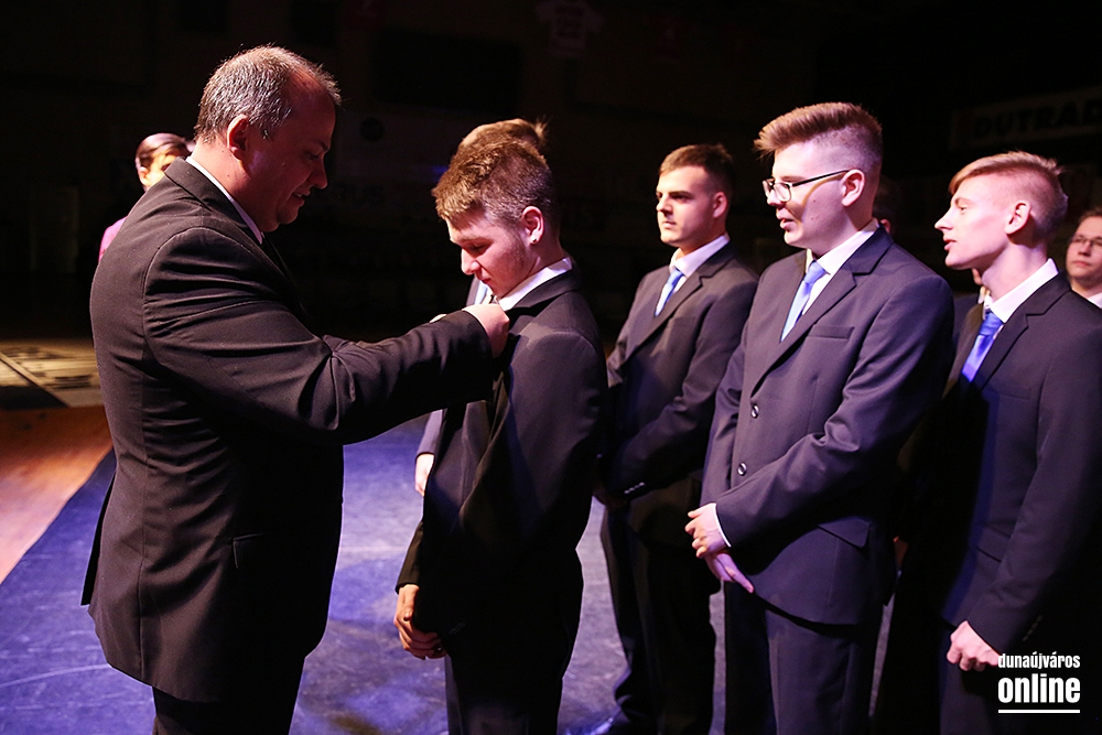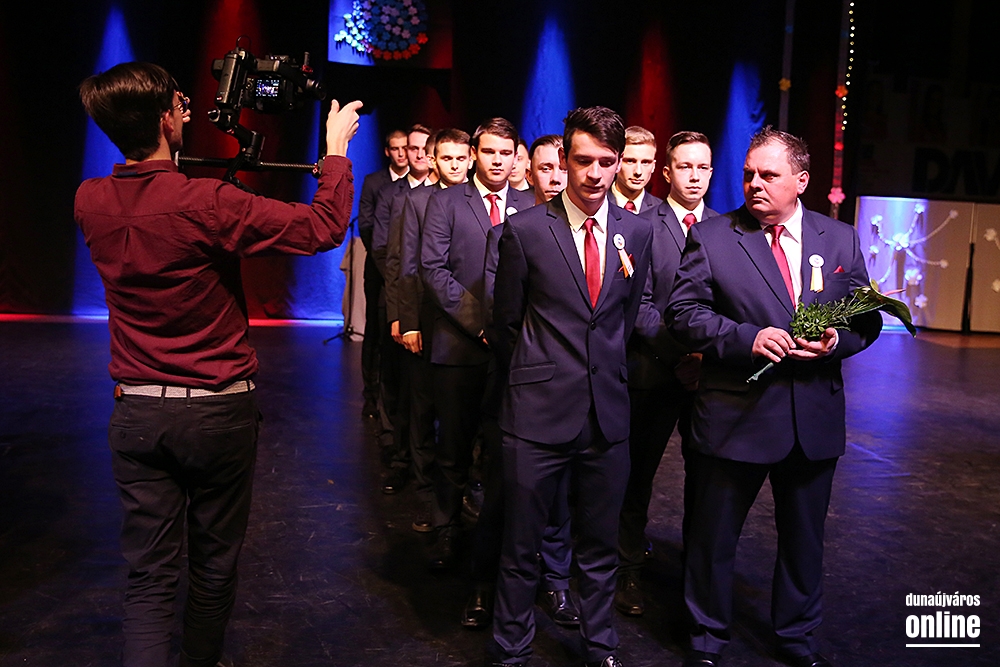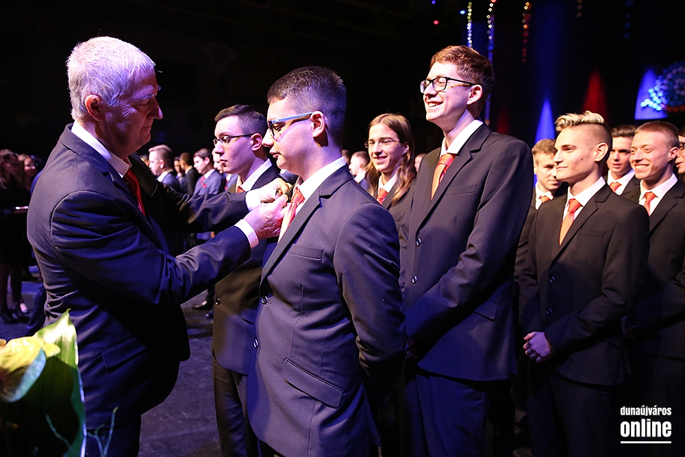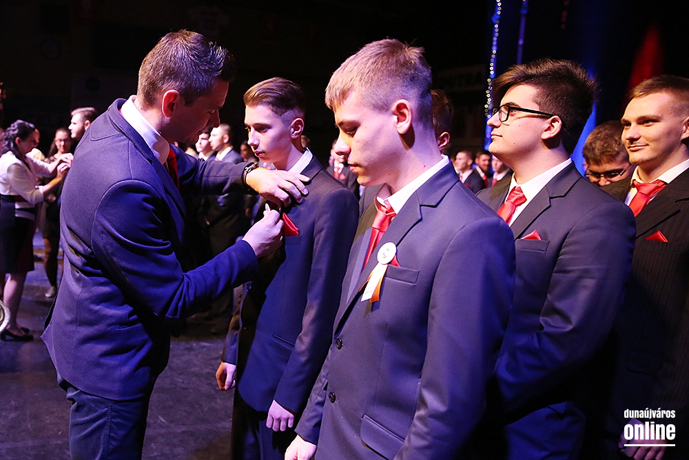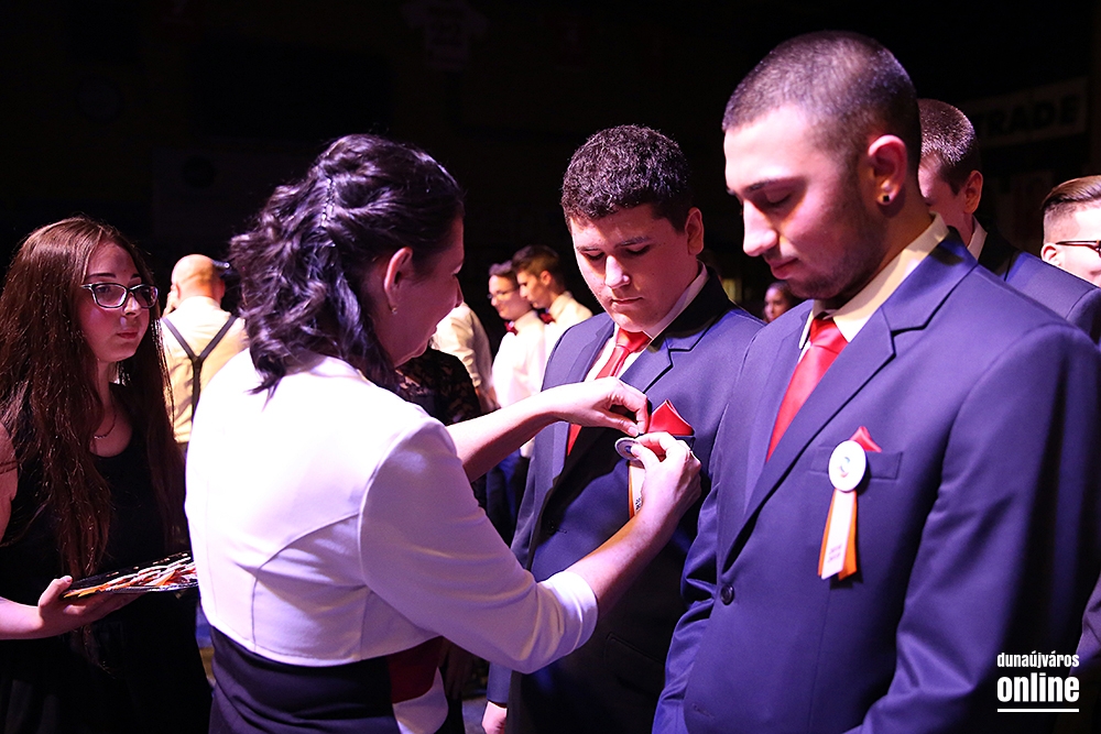 Szinte teljesen megtelt a Dunaújvárosi Sportcsarnok pénteken délután öt órakor, amikor elkezdődött a Dunaferr Szakgimnázium és Szakközépiskola idei szalagtűző ünnepsége. Az osztályok bevonulása után Baráth Károly Artúr igazgató köszöntötte a végzősöket és a szülőket, hozzátartozókat, barátokat. Az ünnepi program a 12Rv1-E1 osztály keringőjével kezdődött.
