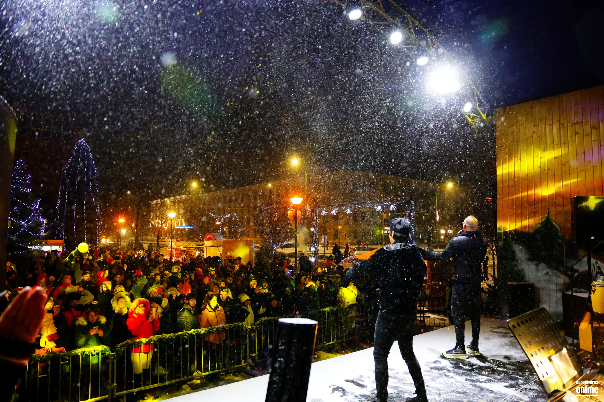 Ha szilveszter, hát buli a téren! Ráadásul a pezsgő és virsli, valamint a remek zenés-táncos mulatság mellé még hóesés is dukált az Adventi Forgatag záróeseményekénsz szervezett óévbúcsúcsztató megmozdulás vendégeinek!
