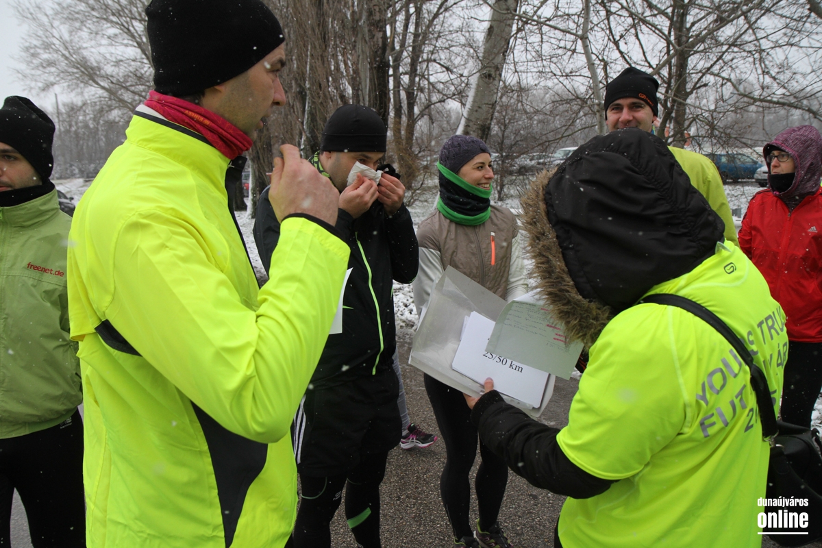 A futás szerelmesei gyűltek össze az öbölben lévő Viktória szobornál. Nem törödve a viszontagságos időjárással, vágtak bele az 5 km-es körökbe. Gyönyörű havas tájban gyönyörködhettek, miközben szelték a kilométereket.