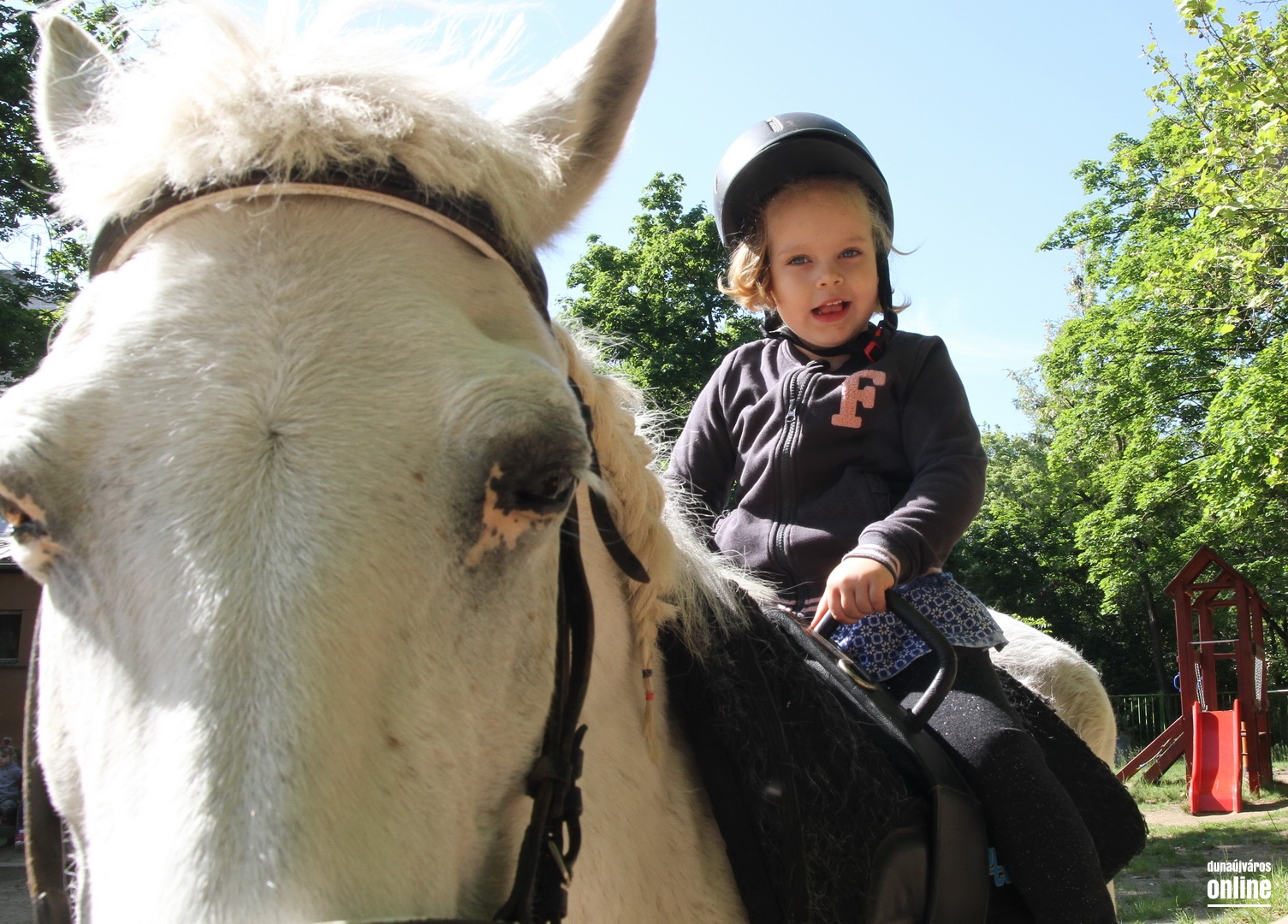 Lovaglás, kürtőskalács, sorverseny, illetve kézműves és egyéb foglalkozás, zenebona, móka, mulatság színesítette az Aprók Háza Tagóvoda gyereknapi kavalkádját – az intézmény udvarán négy állomáson vehettek részt a kicsik csütörtökön délelőttre szervezett meglepetés programon. Mint Gyenes Józsefné, a Dunaújvárosi Óvoda vezetője elmondta, különösen nagy hangsúlyt kapott a kínálatban az állatokkal történő ismerkedés – Nati, az intézményben rendszeresen vendégeskedő terápiás kutyus mellett ezúttal lovaglási lehetőséget is biztosítottak az aprónépeknek.