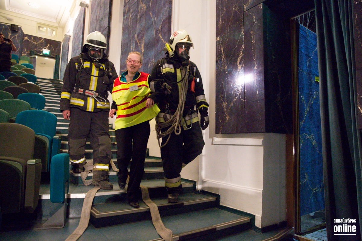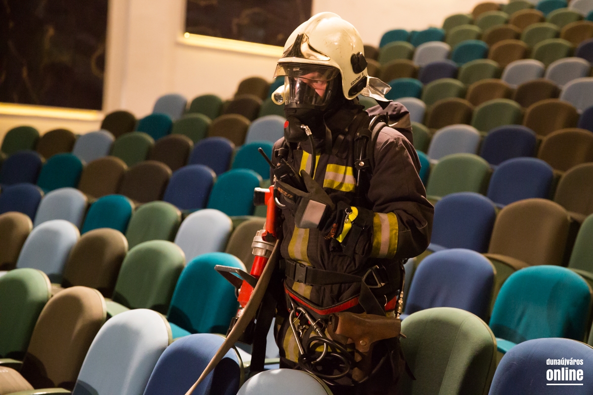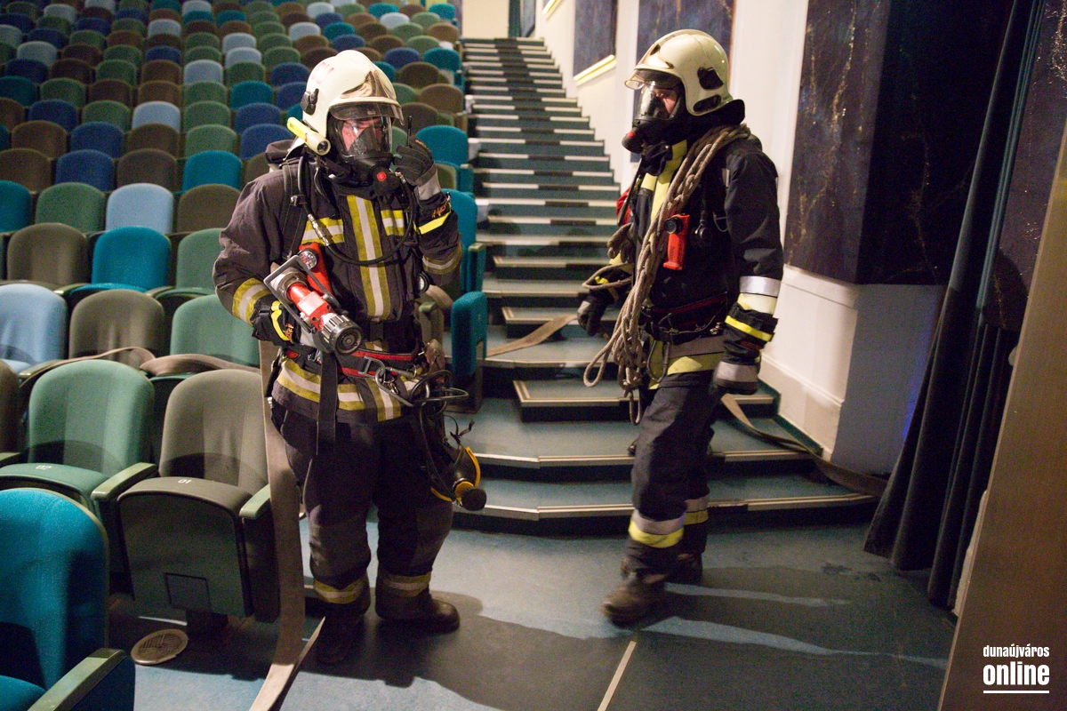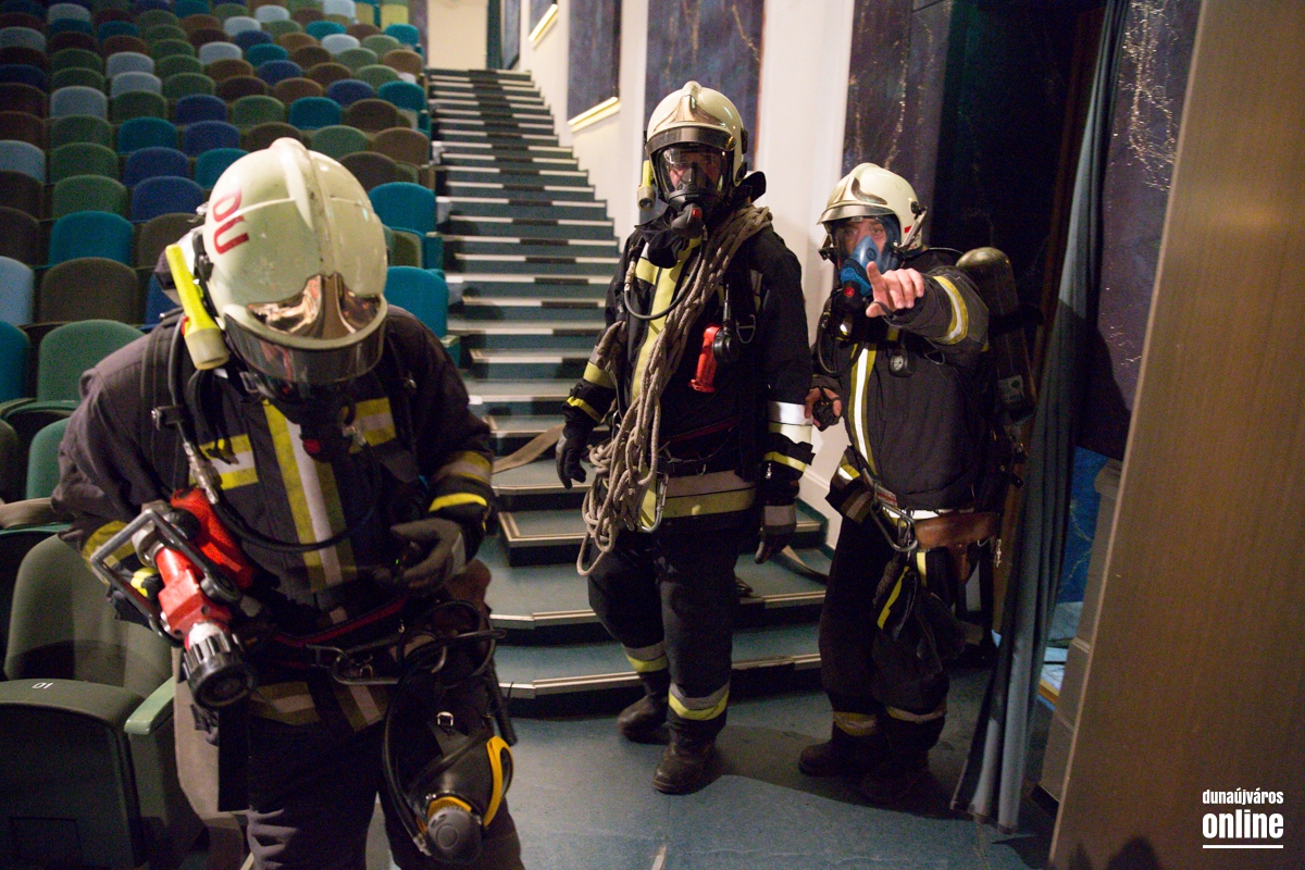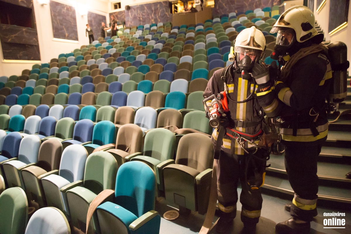 Kiürítési gyakorlatot tartottak a Bartók Színházban az esti koncert végeztével. Teljes menetfelszerelésbe kiérkeztek a szerkocsik, katasztrófavédők. A gyakorlat sikeres volt.