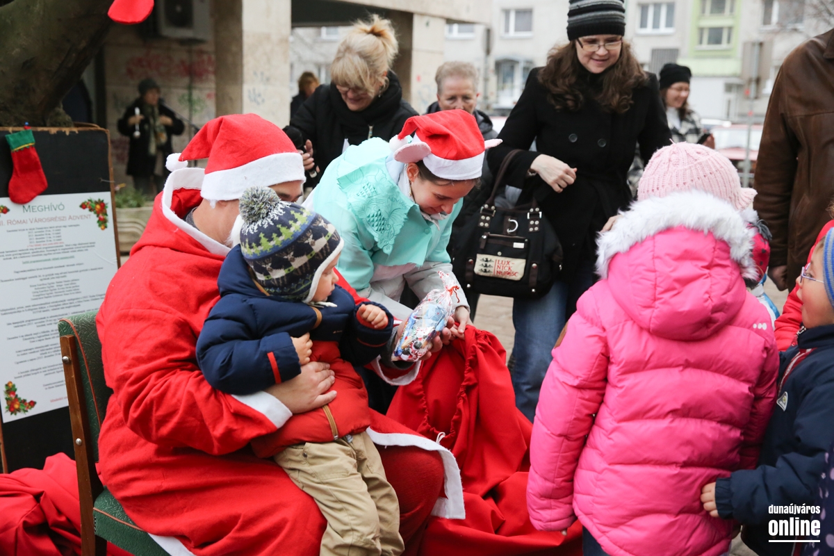 A Római városrészi adventi gyertyagyújtáshoz is eljött a Mikulás, aki a gyerekeknek csomagot is adott. Kovács István görög-katolikus parókus és Braun Ervin baptista lelkész szavait hallhattuk Törő Anikó üdvözlése után. A gyertyagyújtást követően Rudas diákok színvonalas éneklését, szavalását hallhattuk. Ahogy megszokhattuk, finom falatokkal és forró teával vártak minden érdeklődőt.