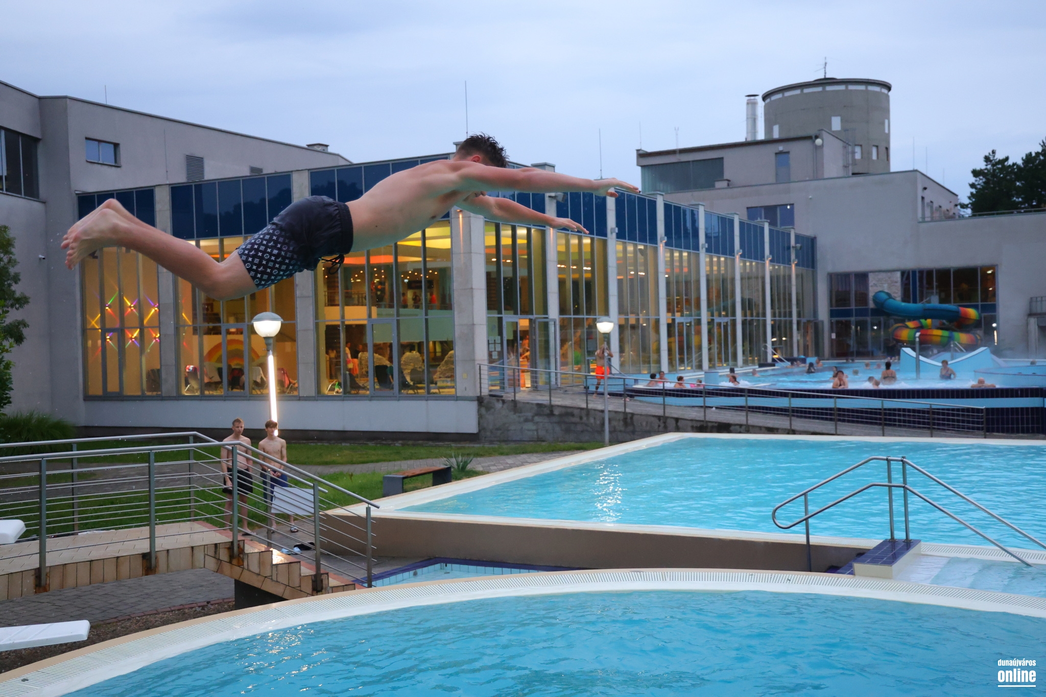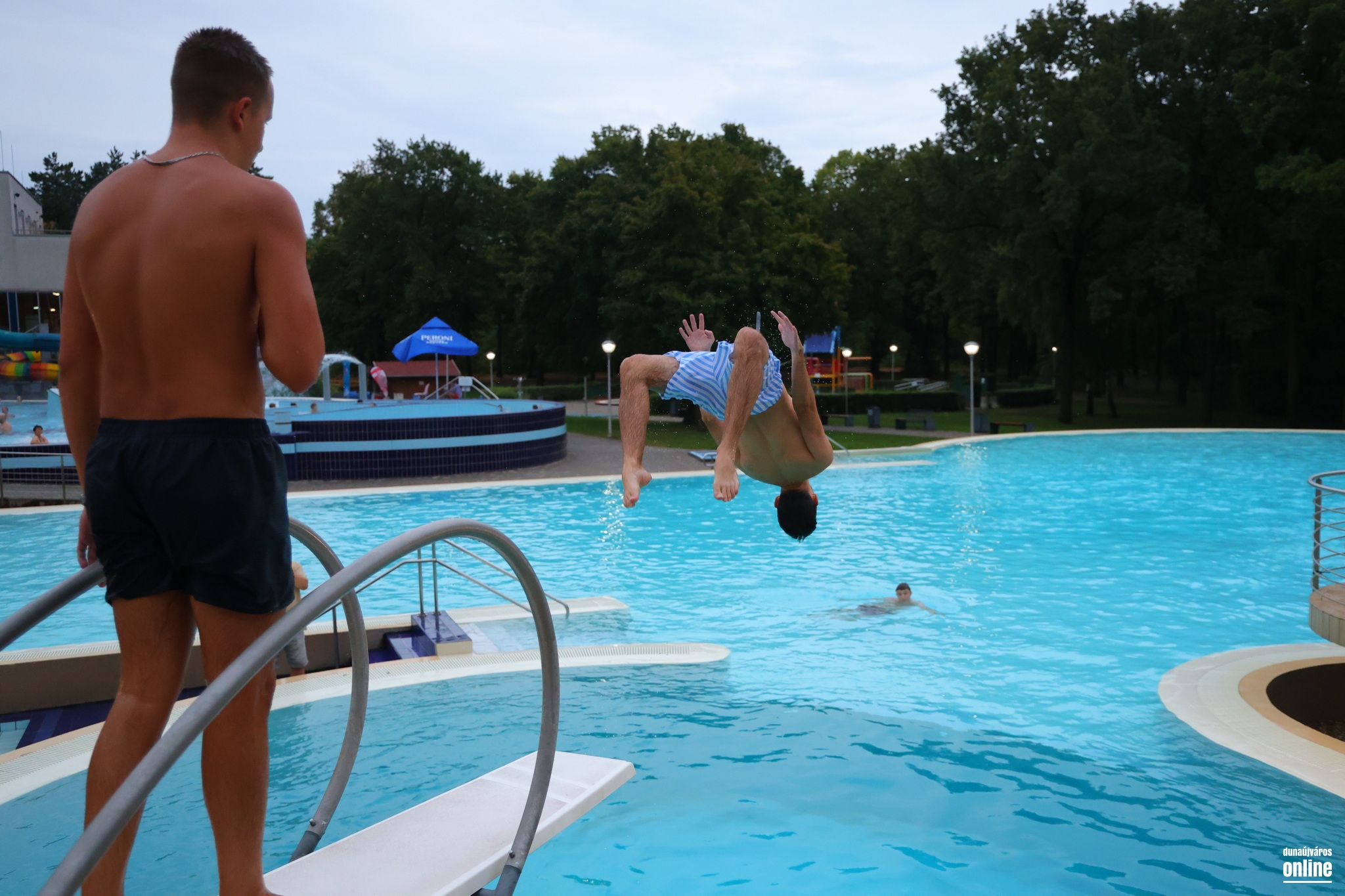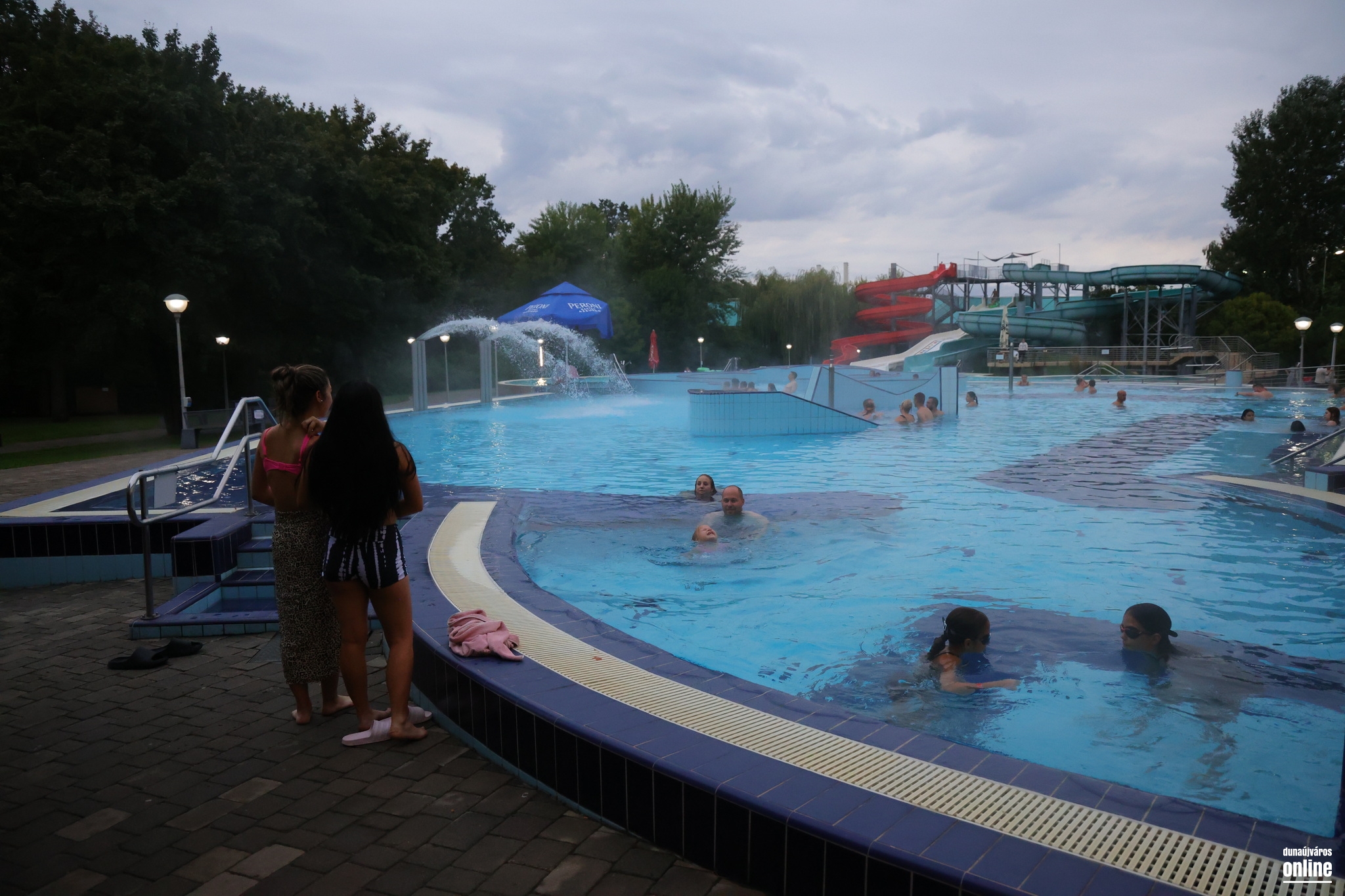 Még az időjárás gonosz tréfája sem riasztotta el a vendégeket, és bár a legutóbbi tumultust nem tapasztaltuk, sokan választották az Aquantis Élményfürdő nyárbúcsúztató buliját múlt szombaton. Igaz, az időjárás ezúttal nem volt annyira kegyes a látogatókhoz, mint legutóbb – pont a hét végén ért véget a tikkasztó nyár eddigi utolsó felvonása –, de aki esetleg azt hitte, hogy üres medencében pancsikolhat, hát nagyon nagyot tévedett. Bár a csillagles tényszerűen elmaradt a felhők miatt, így is sokan választották az élményfürdő kínálta csobbanási lehetőségeket.