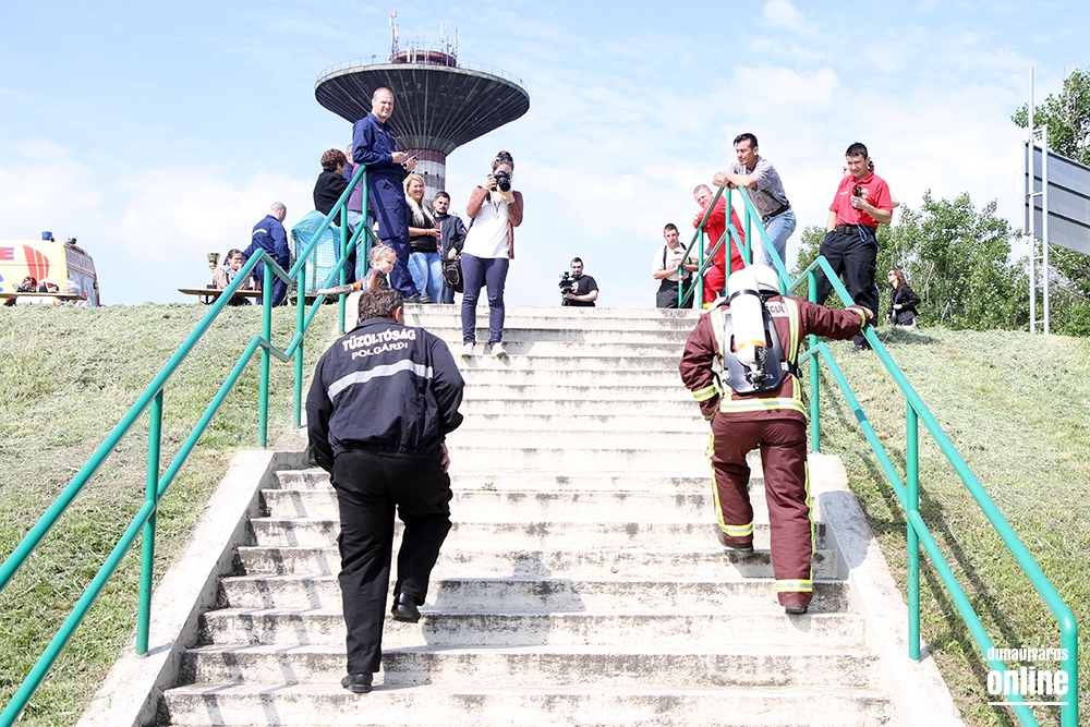 Megyénk hivatásos, önkormányzati, létesítményi és önkéntes tűzoltóságairól érkeztek a versenyzők az erőpróbára. Védőcsizma, védőnadrág- és kabát, kesztyű, sisak, valamint az acélpalackos légzőkészülék összességében közel harminc kilogrammos súlya a célban mázsás terhet jelentett. Több percnek kellett eltelnie mire rendeződött a vérnyomás és a légzés. Három korcsoportban, egyéni összetettben és csapatban hirdettek eredményt. Az elmúlt évekhez hasonlóan, idén már ötödik alkalommal egy székesfehérvári hivatásos tűzoltó, Kaiser Csaba tűzoltó törzsőrmester volt a leggyorsabb, aki korcsoportjában és egyéni összetettben is az első helyet szerezte meg. Nem szégyenkeznie egyetlen indulónak sem, hiszen a legnehezebb feladatot vállalták magukra, legyőzni saját korlátaikat.