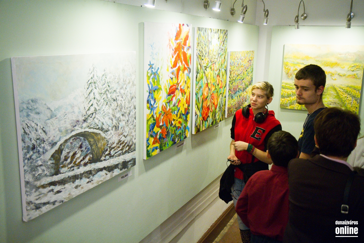 Az aulában tartott megnyitón Büki Attila képzőművész, író kiemelte, 20 évvel ezelőtt Smuk Imrének ugyanezen a napon volt kiállítása az Arany iskolában. A műsort a Viadana kamarakórus színesítette. A látogatók gyönyörű festményeket és gyermekeknek készített mesés műveket láthatnak. A tárlat december végéig tekinthető meg.