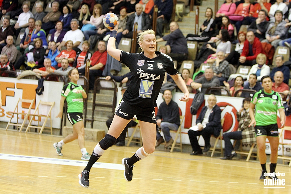 A térfélcserét követően alaposan felforgatta együttesét Mátéfi Eszter vezetőedző, lehetőséget kapott a fiatal Klujber Katrin is, aki azonnal góllal tette le névjegyét a felnőtt csapatnál. Ezzel együtt igen sok hiba csúszott mindkét együttes játékába, így az első tíz percben nem nőtt a két gárda közti különbség (26-16). Idővel azért fáradtak az igen rövid cserepaddal rendelkező vendégek, míg a mieink játéka szerencsére pontosabbá vált, így az utolsó negyed óra már örömjátékot hozott, melyből szebbnél is szebb találatokkal vették ki részüket játékosaink, akik végül kiütéses, 39-20-as győzelemmel biztosították be harmadik helyüket az alapszakasz végén.