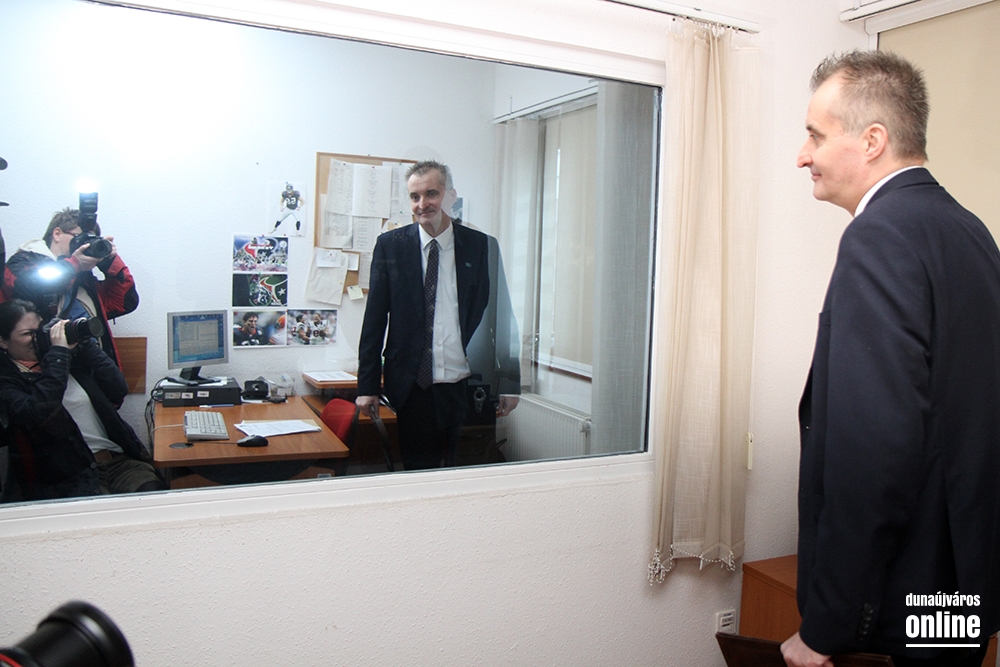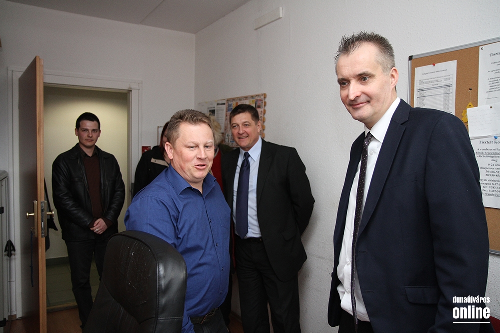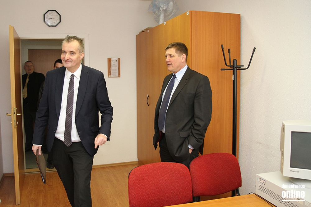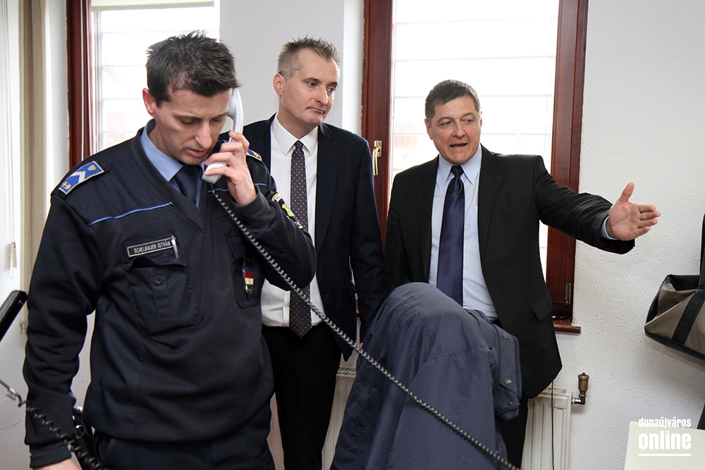 Nagy Zoltán ezredes, Dunaújváros rendőrkapitánya elsőként a szolgálatirányítási helyiséget mutatta meg a látogatóknak. Az ügyeleti szobában a monitorokon tudják követni, hogy melyik járőr-autó éppen merre jár, s azt is, hogy éppen melyik intézkedik, s melyik szabad. Így az ügyeletes könnyebben tud dönteni arról, hová kit küldhet. A látogatás idején érkezett bejelentés egy eltűnt személyről, akit feltehetően a Béke téren lehet megtalálni. Máris küldték a járőr-autót.