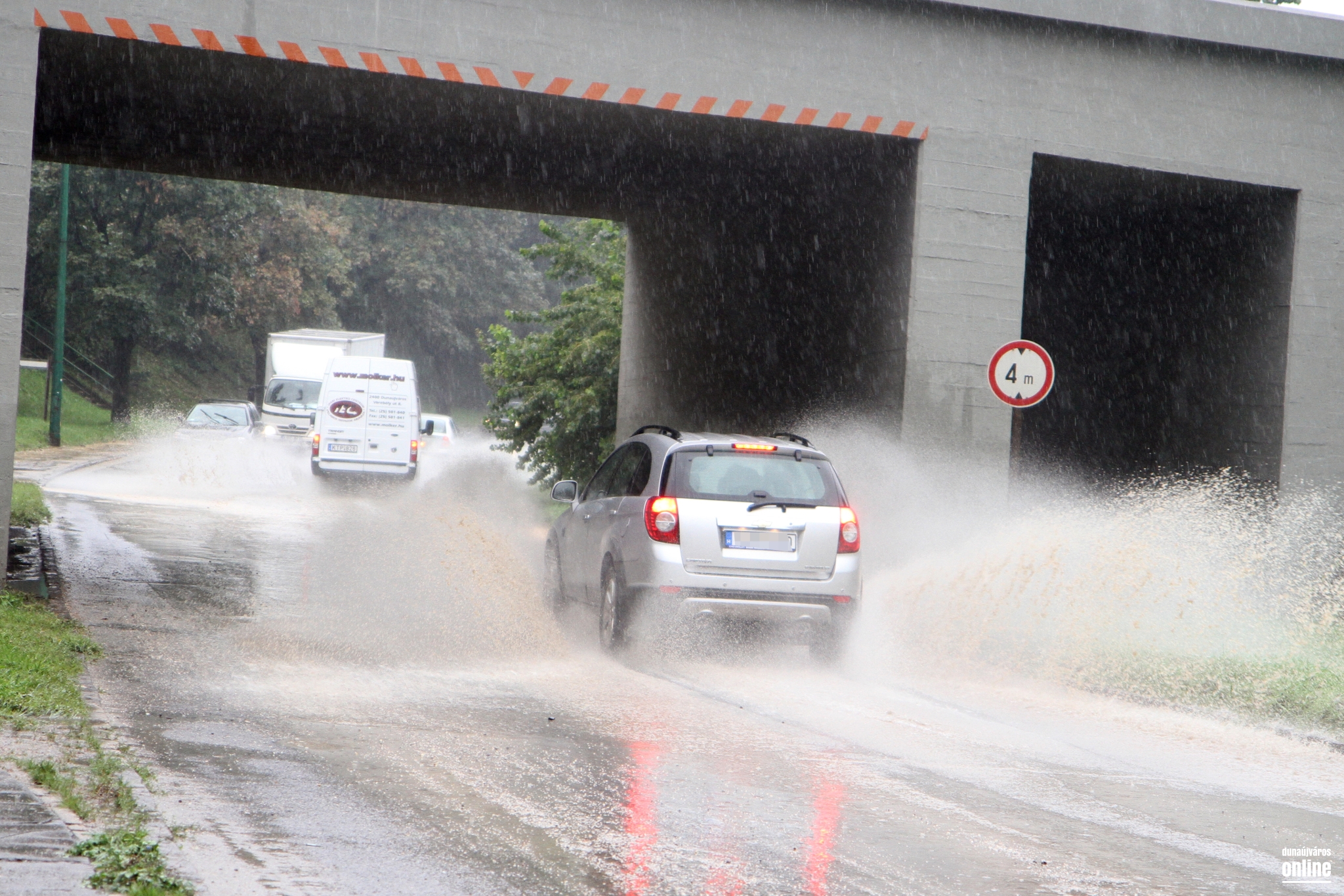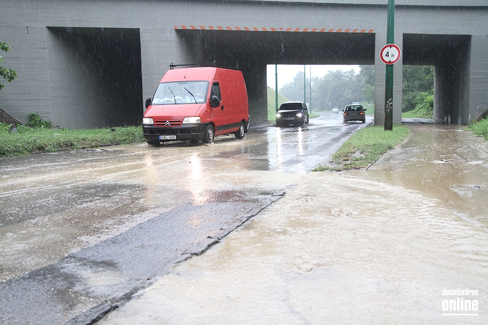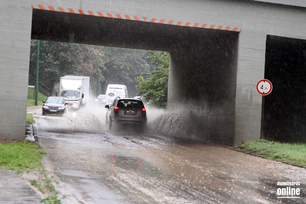A Dózsa György úti vasúti felüljárónál is áll a víz, ott lassú a haladás, torlódásra lehet számítani.