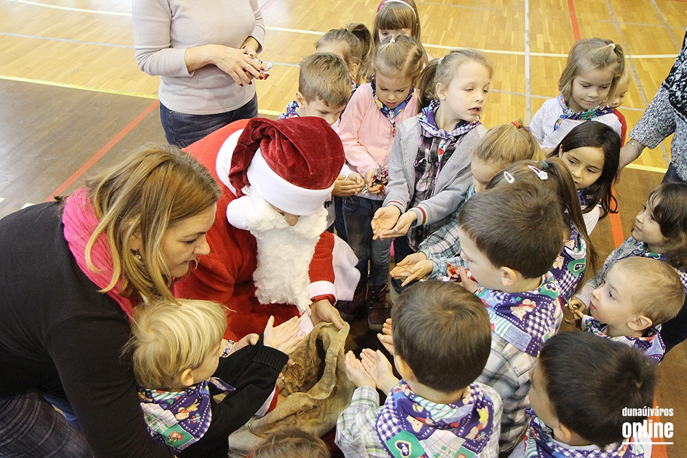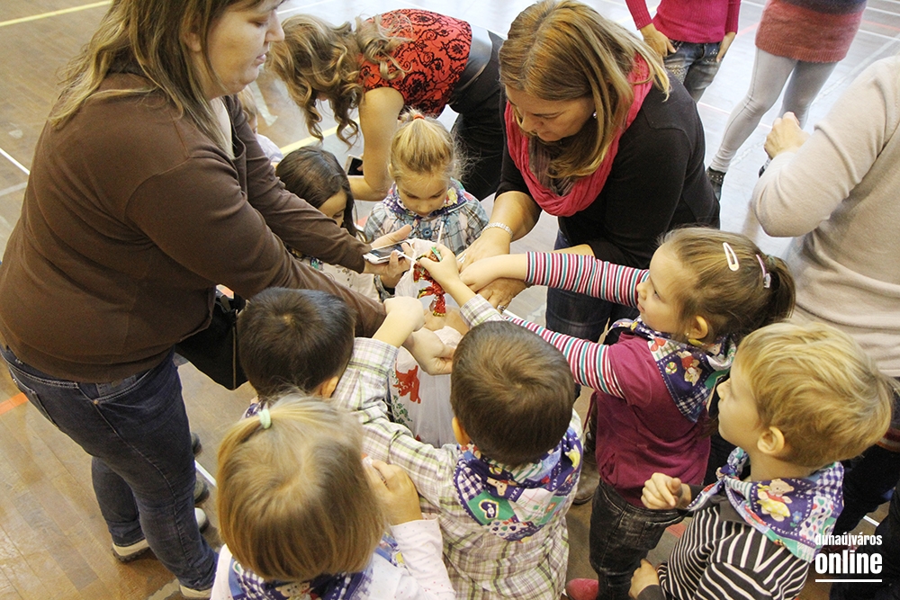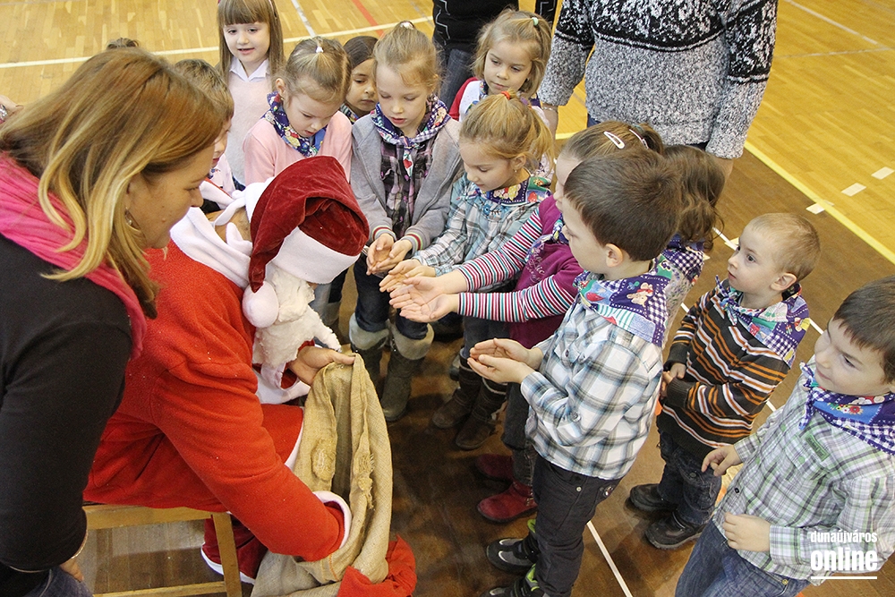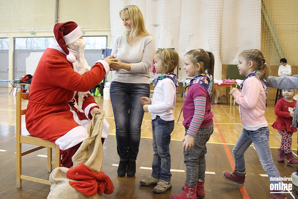 A kicsik kipróbálhatták a Széchenyi pékség asztalánál a mézeskalács és a linzer sütését, formázását, akár fenyőfa, akár hóember alakúra szabhatták a sütiket. Az Életke Egyesületnél az állatvédelemről tudhattak meg többet a gyerekek, és találkozhattak otthontalan kutyákkal, cicákkal is, akikkel összebarátkozhattak. A Mesekuckó Játszóháznál karácsonyi kreatív foglalkozást tartottak, sablonból ünnepi díszeket készíthetett bárki, aki szeretett volna. A ruhavásáron bölcsis és ovis korú gyerekeknek való ruhák közt lehetett válogatni, az ebből befolyt pénz pedig tovább növelte az adomány összegét. Tíz óra után elkezdte műsorát a Duna parti Óvoda Mézeskalács csoportja, és megérkezett a Mikulás is, aki a városi üzletek által felajánlott csokival, gyümölcsökkel, nyalókával és más finomságokkal kedveskedett mindenkinek. Később a Dózsa iskola 1.a osztályos tanulói énekeltek karácsonyi dalokat, majd egy zenés meseelőadással készültek a szervezők, Dalos Tanya udvarán címmel.
