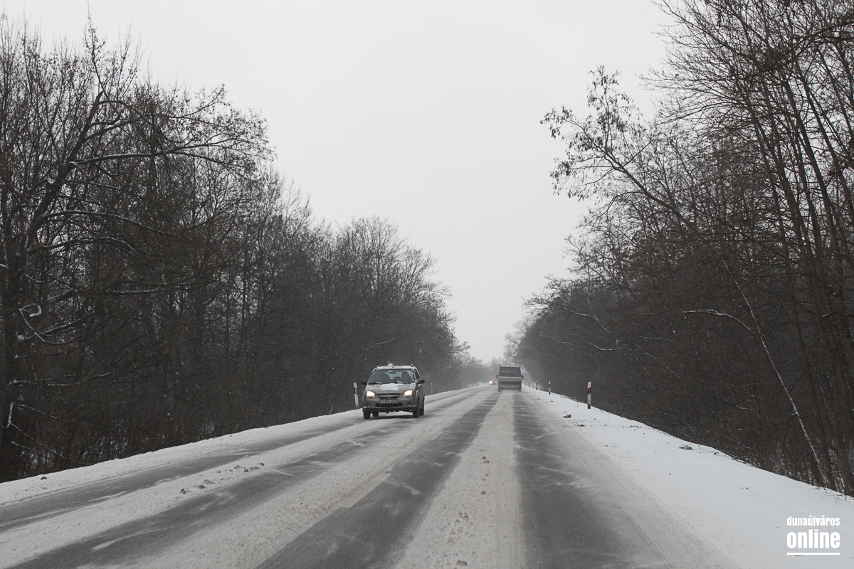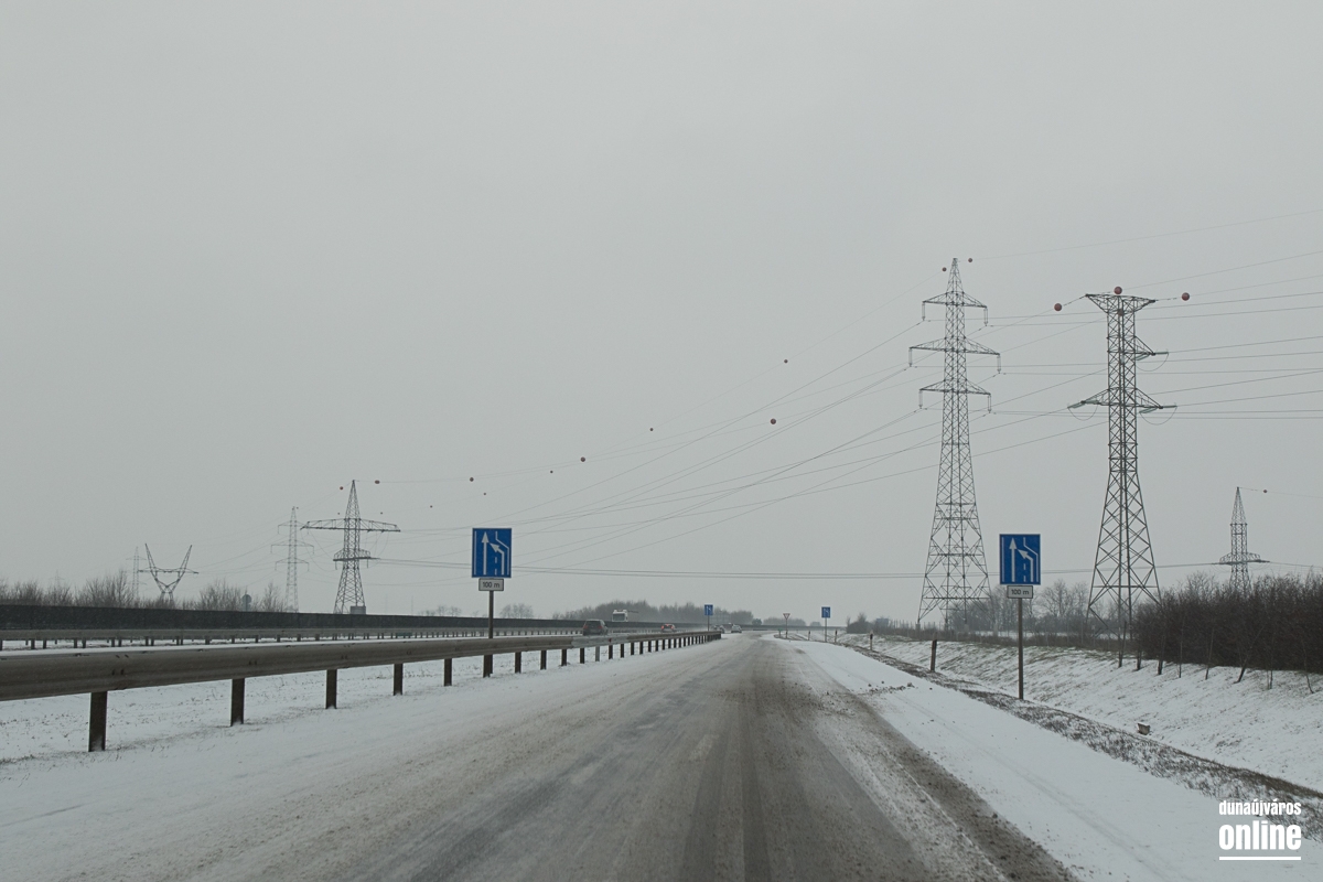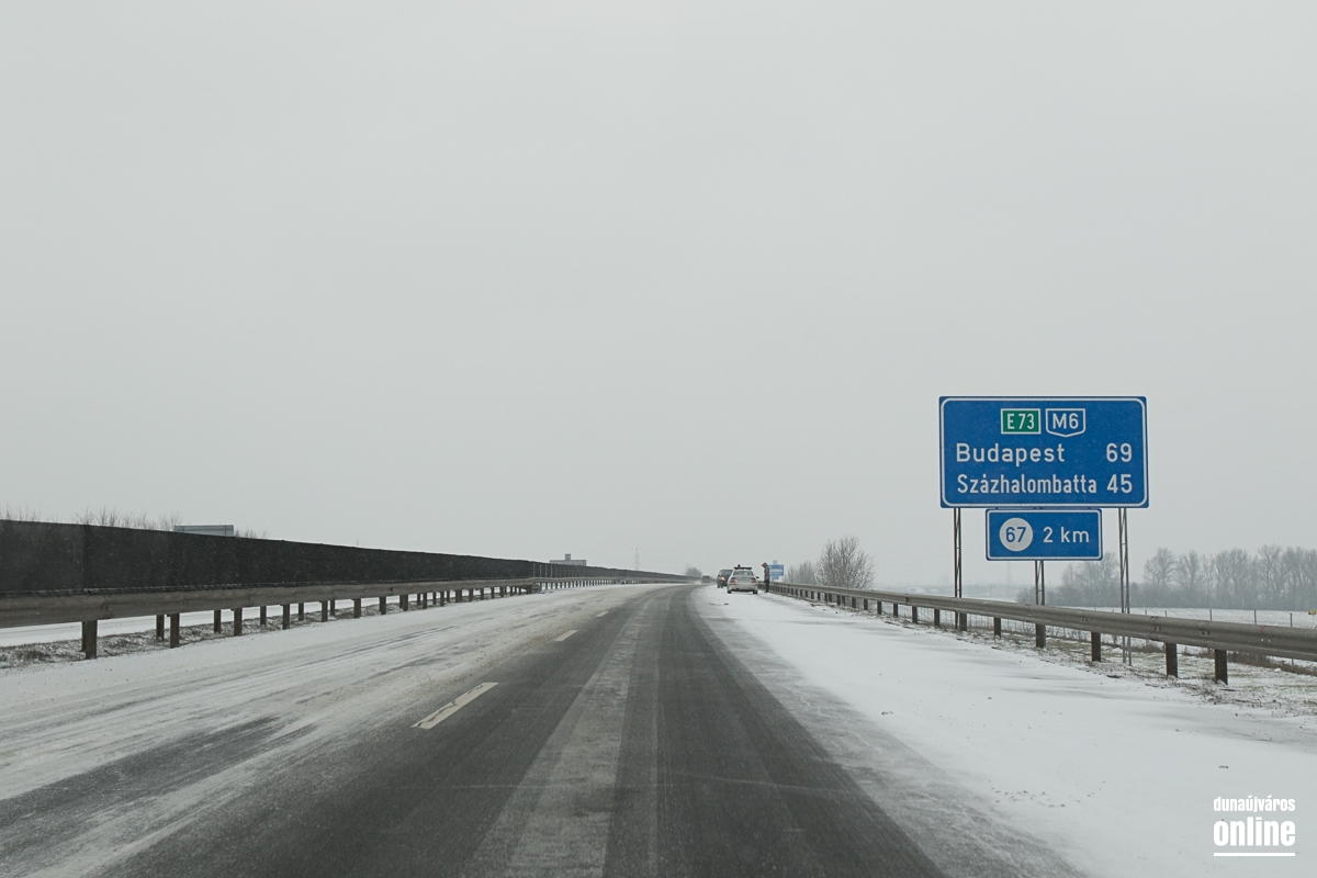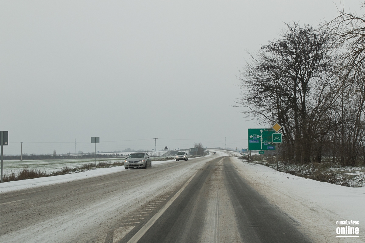 A vasútállomásnál kicsit kritikusabb volt a helyzet, ott masszívan csúszott a letaposott hó. A 6-os út sem volt tiszta, de 60 km/órás sebességgel biztonsággal lehetett autózni rajta. Az M6-os autópálya külső sávja volt járható ottjártunkkor, hókotróval nem találkoztunk és ahogy kinézett a helyzet, még az általunk érintett szakaszon nem is járt munkagép. A 62-es út szintén zenész: letaposott havas, lassan járható. Az autópályán találkoztunk egy megcsúszott, sérült autóval, komolyabb baj, személyi sérülés szerencsére nem történt. A 6-os út mentén a gumigyáras körforgó előtt egy autó fejjel lefelé feküdt az árokban, kollégánk helyszíni jelentése szerint személyi sérülés nem történt.