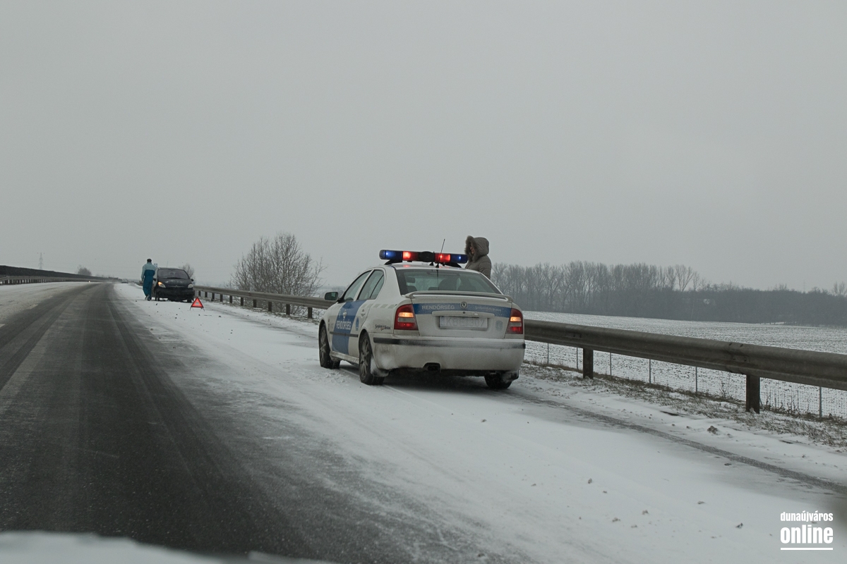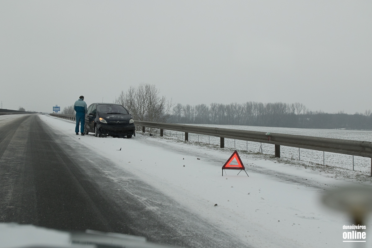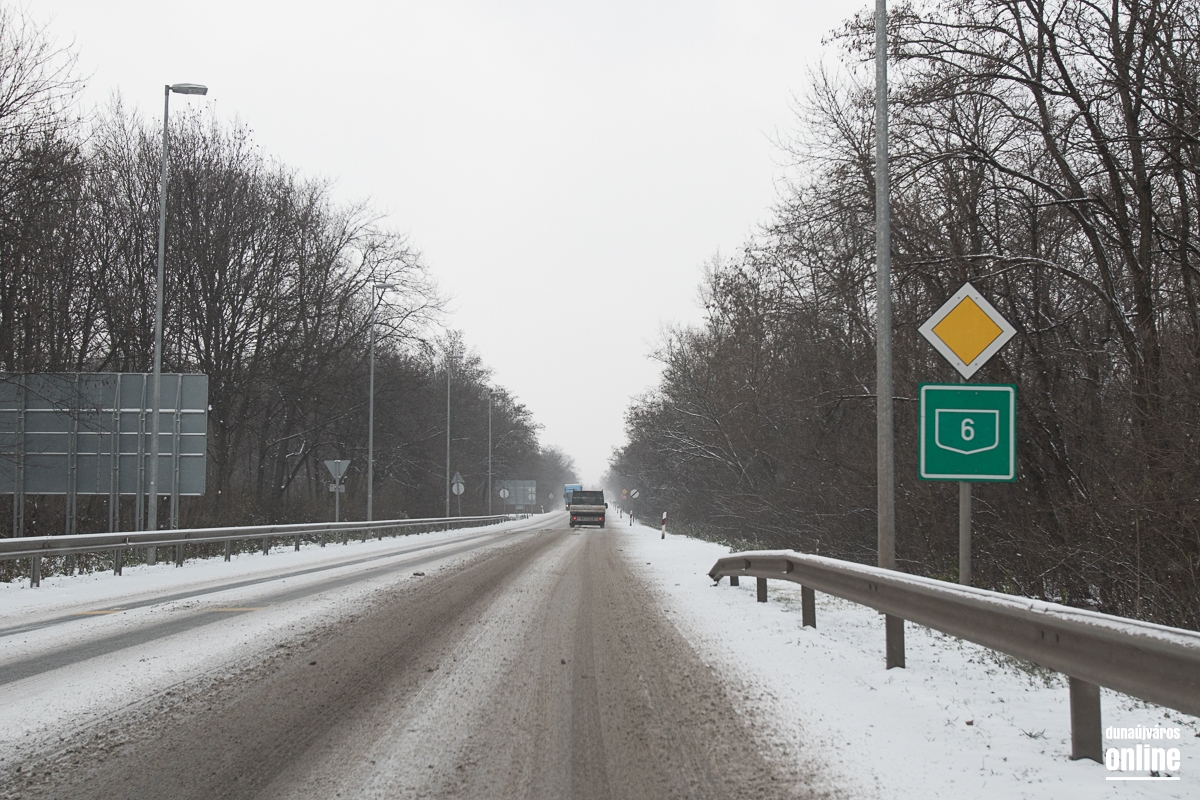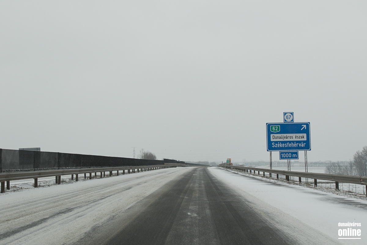 A vasútállomásnál kicsit kritikusabb volt a helyzet, ott masszívan csúszott a letaposott hó. A 6-os út sem volt tiszta, de 60 km/órás sebességgel biztonsággal lehetett autózni rajta. Az M6-os autópálya külső sávja volt járható ottjártunkkor, hókotróval nem találkoztunk és ahogy kinézett a helyzet, még az általunk érintett szakaszon nem is járt munkagép. A 62-es út szintén zenész: letaposott havas, lassan járható. Az autópályán találkoztunk egy megcsúszott, sérült autóval, komolyabb baj, személyi sérülés szerencsére nem történt. A 6-os út mentén a gumigyáras körforgó előtt egy autó fejjel lefelé feküdt az árokban, kollégánk helyszíni jelentése szerint személyi sérülés nem történt.