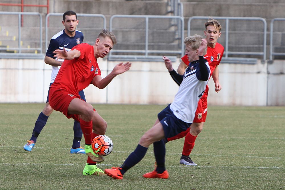 Ennek megfelelve nem estek egymásnak a csapatok, de jó volt látni, hogy a múlt heti összecsapáshoz képest magabiztosabban mozogtak a dunaújvárosi fiatalok, de fölénybe nem kerültek. A vendégek támadásaikat főként a jobb oldalukon vezették, melyekből három sarokrúgást alakítottak ki a 12. percben. Dánielt dolgoztatták meg a váciak, majd az első negyedóra végén Huszárik szabadrúgása után Szellák lőtt 20 méterről, melyet Palásthy könnyen védett. A 23. percben a sokadik jobboldali szögletet követően nem sikerült felszabadítaniuk a hazai védőknek, akik között a lesgyanús helyzetben lévő Tányéros közvetlen közelről passzolta a kapuba a labdát (0-1). Középkezdés után szinte azonnal növelhette volna előnyét a Vác, ha Rása egy kicsivel megfontoltabban céloz.