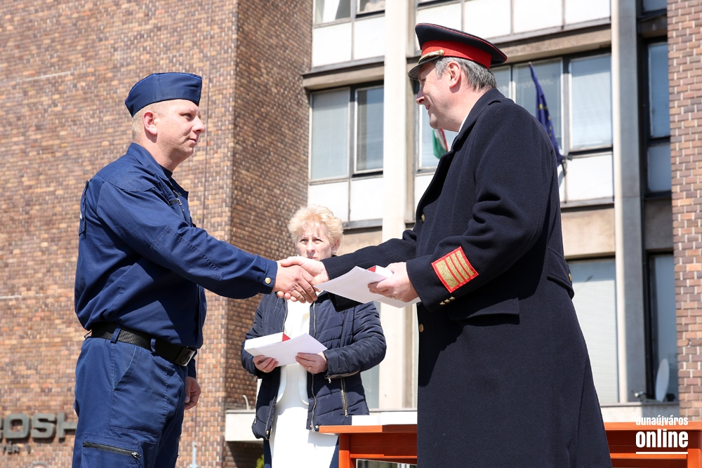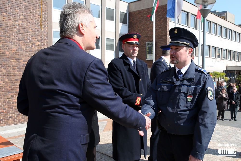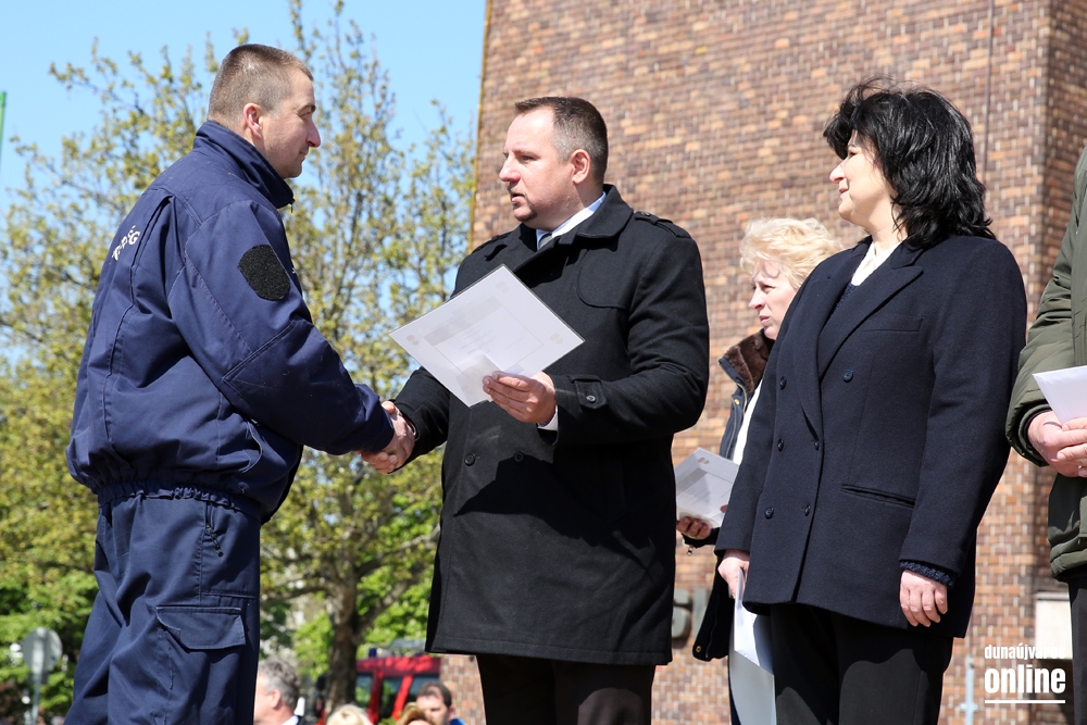 Ezután került sor a Dunaújváros Közbiztonságáért Díjak átadására, amelyet idén Németh Miklós rendőr őrnagy, Baka Ferenc rendőr törzszászlós és Katona Norbert címzetes tűzoltó főtörzsőrmester vehetett át.