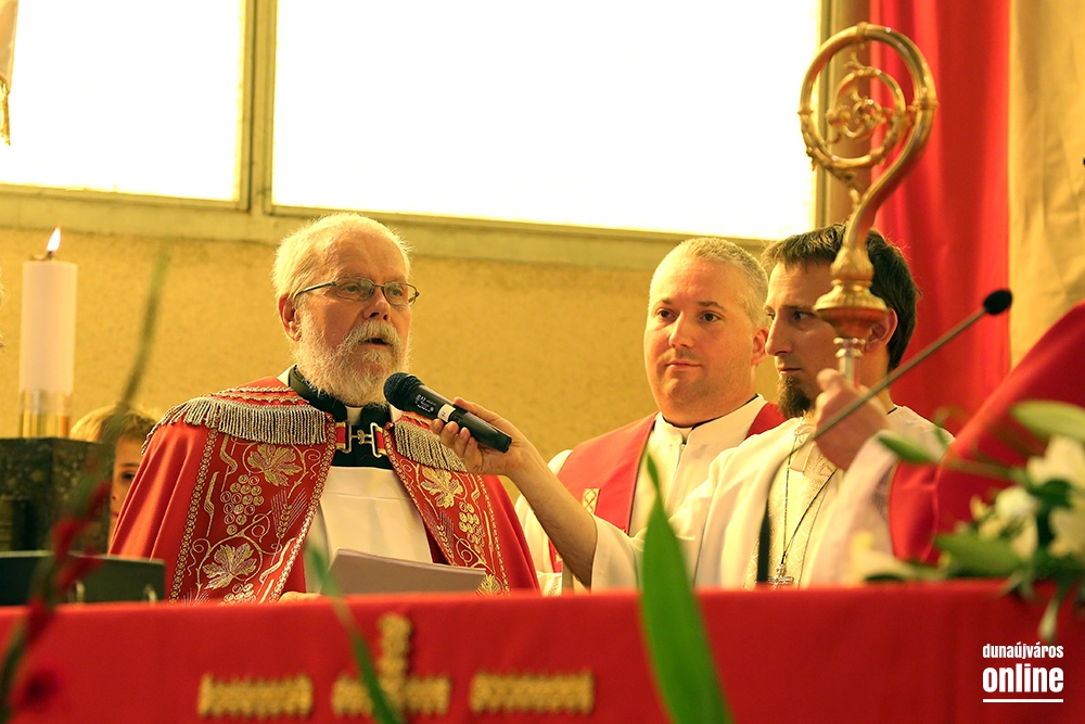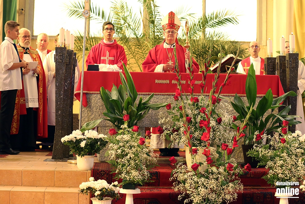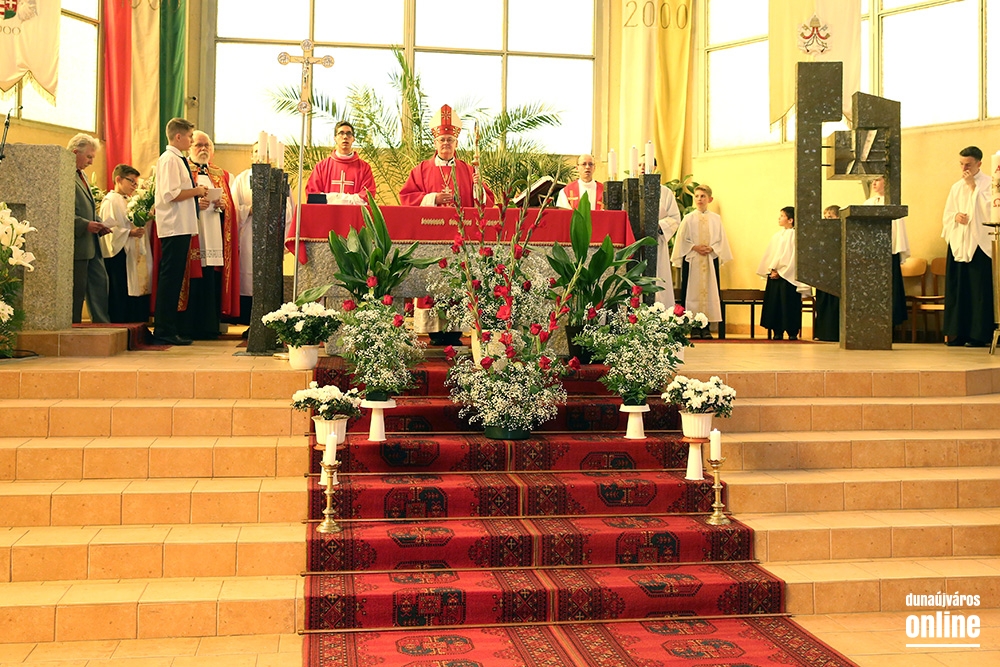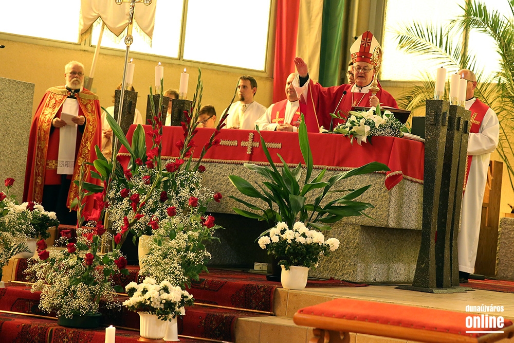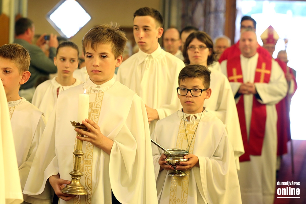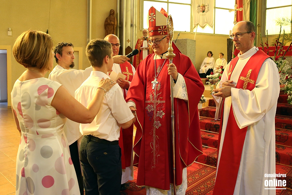 Az egyházmegye főpásztora érkezett szombaton, pünkösd előestéjén a római katolikus Krisztus Király templomba, hogy szentmisét celebráljon és kiszolgáltassa a bérmálás szentségét. Spányi Antal, székesfehérvári megyéspüspök atya nem először érkezett a templomba, ő volt ugyanis az, aki annak idején, még 2008 őszén felszentelte az épületet, legutóbb pedig ez év márciusában járt itt, mikor a Magyarországi Katolikus Karitász és a Dunaújvárosi Karitász Csoport tevékenységét bemutató "Megesett rajtunk a szíve..." című vándorkiállítást nyitotta meg. Ezúttal is Baltási Nándor római katolikus plébános meghívására érkezett városunkba. A szülők, nagyszülők, hitoktatók és hívek köszöntése után elmondta, városunkban háromszáznál is többen vesznek részt a hitoktatásban, közülük tizenöten a bérmálás szentségének kéréséig is eljutottak, mely a keresztségben újjászületettek megerősítése a Szentlélek kiáradása által, ami a keresztény nagykorúságra elvezeti és kegyelmeivel támogatja őket.