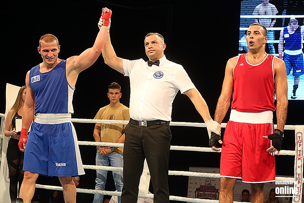 Délután háromtól a Dunai Ökölvívó Kupán a magyar amatőr versenyzőké volt a főszerep. A háromperces menetek elsősorban a lelkes pofonosztásról szóltak, de a szervező Dunai Ökölvívó Sportegyesület képviselői szerint is mindenekelőtt a meccsrutin megszerzése az elsődleges feladat egy ehhez hasonló tornán. Később a korosztályok emelkedésével a mérkőzések komolysága is egyre csak nőtt és elérkeztek a keményebb bunyók is. Ekkor szálltak ringbe a vendég román és szlovák csapat ellen az egri sportegyesület és a Vasas versenyzői mellett a DÖSE ökölvívói is, akik ketten közvetlenül a magyar válogatott színre lépése előtt játszották felvezetőmérkőzésüket. A felvezető utolsó előtti meccsén a nehézsúlyú Gálházi Krisztián lépett a kötelek közé és nézett szembe román ellenfelével, aki bár bátran öklözött és gyorsan tért ki az ütések elől, Krisztián türelmesen kivárta a megfelelő pillanatokat, hogy tisztán vihesse be a találatait. Ezekből mindössze néhány is elég volt ahhoz, hogy a román versenyző megszédüljön, a második menet első másodperceiben pedig edzője meg is hozta a helyes döntést: bedobta a töröközőt versenyzője testi épségének érdekében.