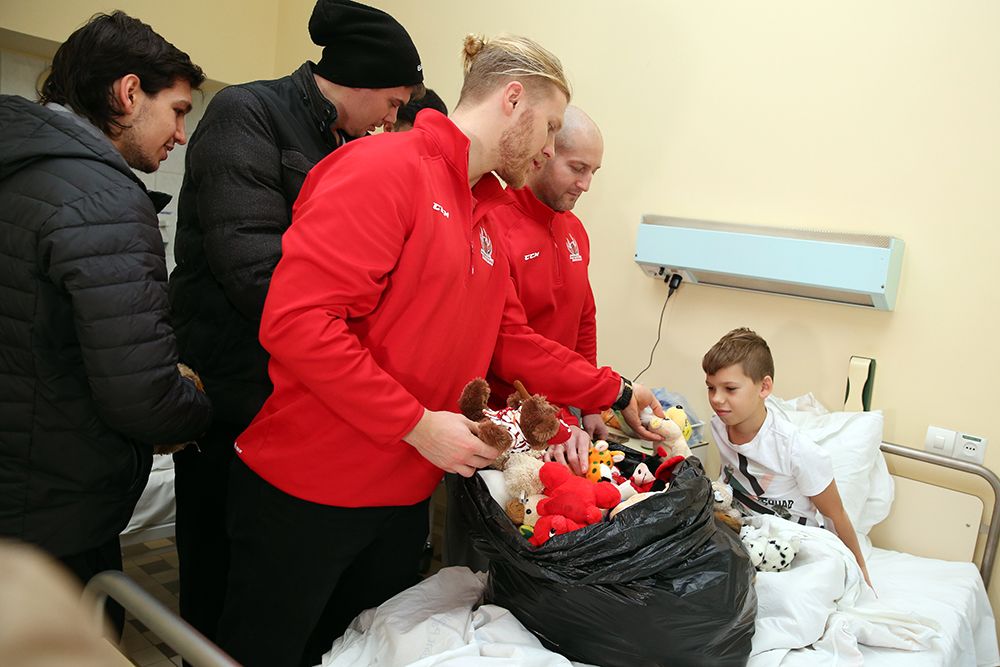 Az Acélbikák hétfős különítménye (Keszler János gyúró, ifjabb Azari Zsolt, Orbán Attila, Hruby Gellért, Léránt René, Nagy Márk és Mestyán István) először a gyermekosztály, majd a fül-orr-gégészet ifjú betegeit halmozták el ajándékokkal, majd ellátogattak az intézmény bölcsődéjébe is, ahol szintén óriási örömmel fogadták a zsákszámra hozott plüssöket a gyermekek. Miközben a legkisebbek nagy izgalommal kutakodtak az új kedvencek után, Erdély-Franyó Anna ápolási igazgató köszönte meg a csapat és szurkolói segítségét, kiemelve, hogy minden kisgyermeknek hatalmas örömöt jelent egy-egy ilyen jótékonysági kezdeményezés.