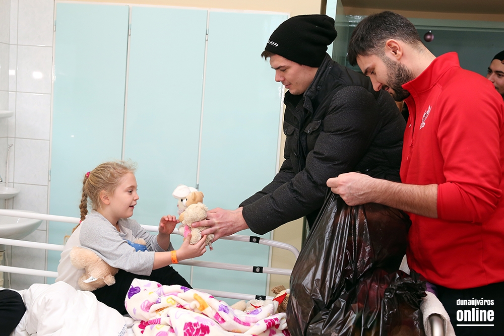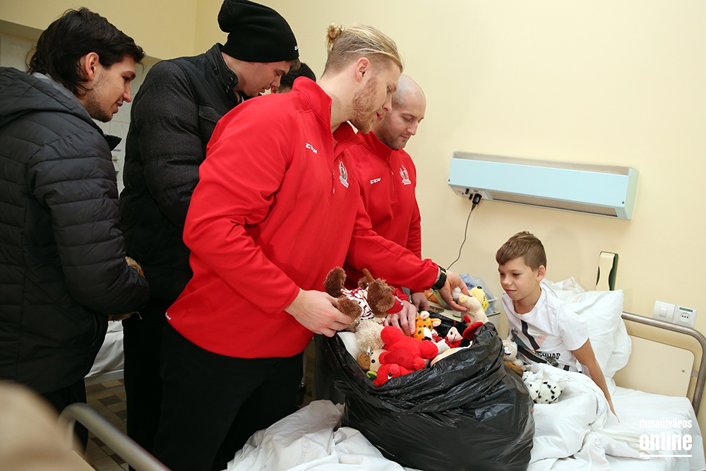 Ahogy az elmúlt években, úgy idén is rengeteg plüssjátékkal lepték meg a Szent Pantaleon Kórház ifjú betegeit és napköziseit a Dunaújvárosi Acélbikák jégkorongozói.