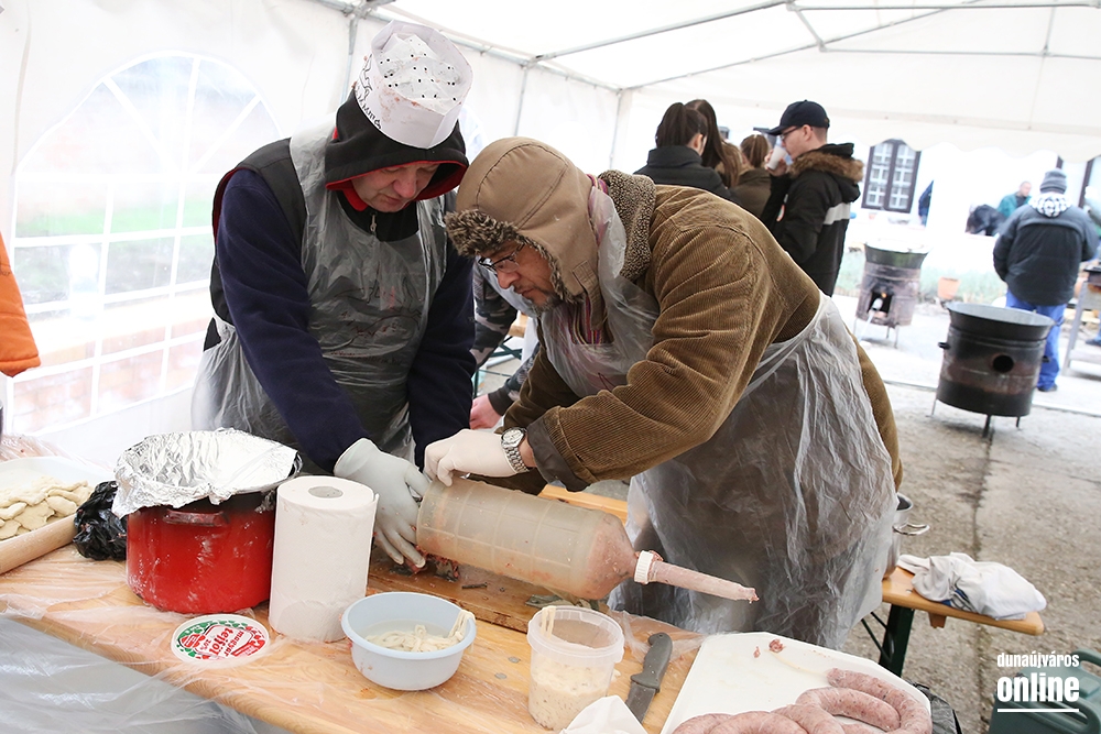 A disznótorossal az is céljuk, hogy bemutassák a fiataloknak az ehhez kapcsolódó szokásokat: az Intercisa Múzeummal egy kiállítást rendeztek be, amelyben a disznóvágáshoz kötődő korabeli eszközöket láthatták a diákok, kint pedig a Bokor Tamás, Kiss Tibor és Kovács István böllérekkel a hús feldolgozását szemlézhették. Természetesen a sült vér, hurka, kolbász megízlelése sem hiányozhatott a sorból. A disznót a Pálhalmai Agrospeciál Kft. ajándékozta az ambulanciának, a sátrat a kulcsi polgárőr egyesület, de sok segítő is hozzájárult önkéntes munkájával a vidám nap létrejöttéhez.