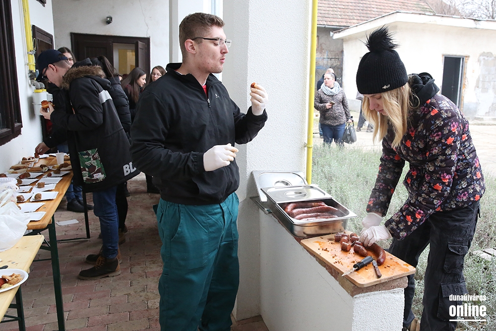 Rengeteg diák látogatott el az Újváros Drogambulancia udvarára, ahol bemutatták nekik a hagyományos disznóvágás hangulatát, és azt, hogy ezen régi szokást józanul is lehet élvezni.