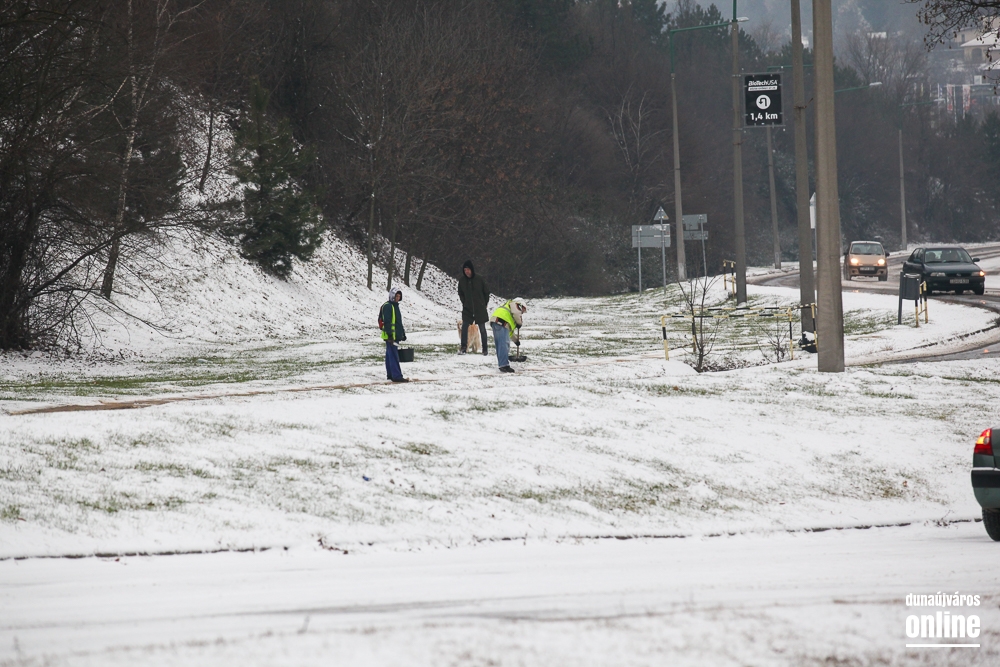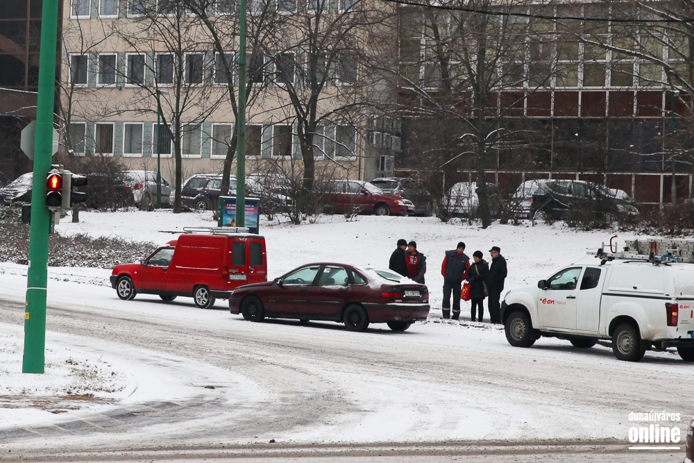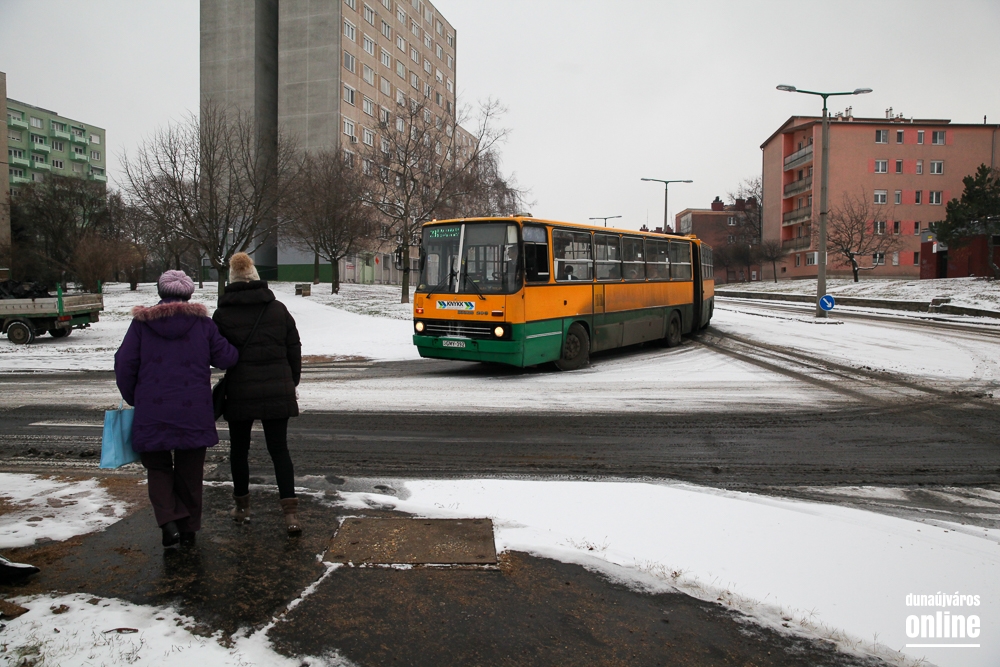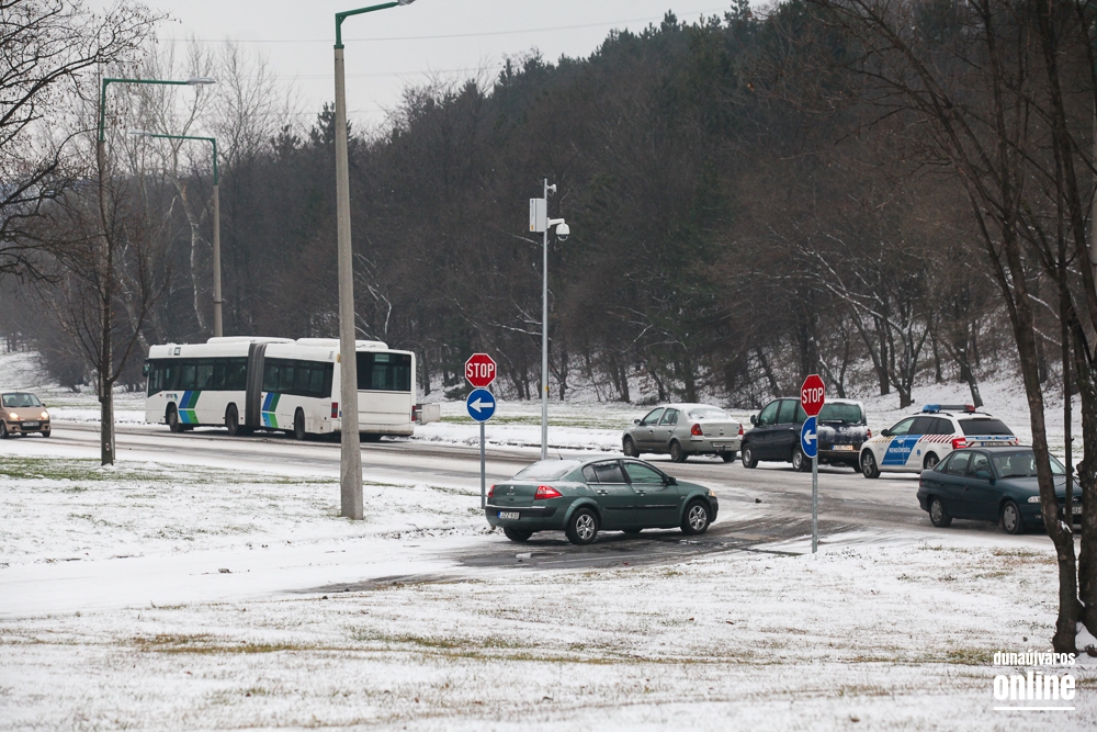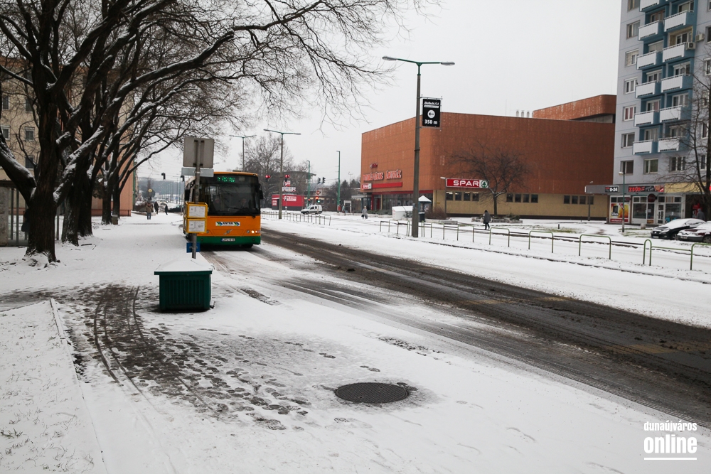 Két helyen is problémát okozott a buszoknak a havas aszfalt: sem az Aranyvölgyin felfelé a Rómaira, sem a Magyar úton a város irányába nem tudtak felkapaszkodni a buszok az emelkedőre.