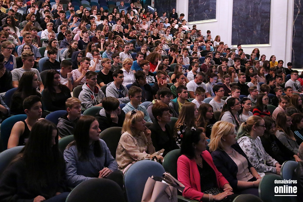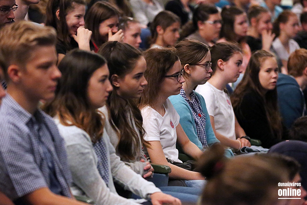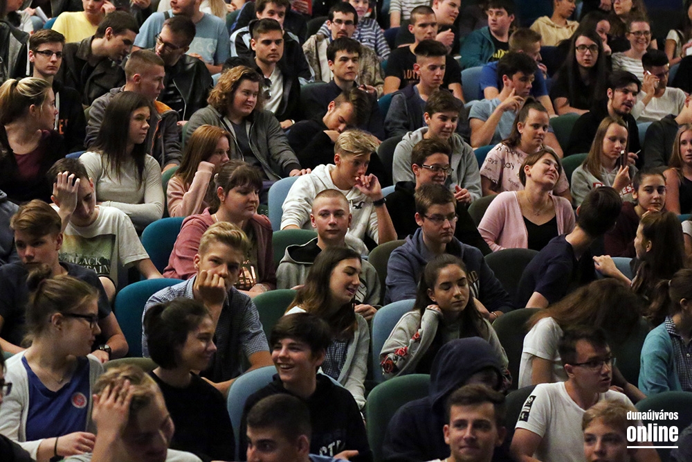 Teljesen megtelt diákokkal a Bartók színház nézőtere. Az iskolások a Közbiztonsági Rendezvénysorozathoz kapcsolódó programra érkeztek, amin az őket leginkább érintő veszélyekről hallhattak bővebb tájékoztatást. A tanulókat Németh Miklós rendőr őrnagy, a Balesetmegelőzési Bizottság elnöke, Suszter Tamás alezredes, a Dunaújvárosi Rendőrkapitányság vezetője és Izsák Máté, az Oktatási, kulturális, ifjúsági és sportbizottság elnöke köszöntötte. Utóbbi elmondta, a Közbiztonsági Rendezvénysorozat igazi sikertörténet a városban, amely már 24. alkalommal mutatja be a rendőrség, a katasztrófavédelem, a mentők és a tűzoltók munkáját. Az önkormányzat idén is kiemelt támogatást nyújtott a programsorozatnak, hiszen nagy hangsúlyt fektetnek a gyerekek biztonságáért és a bűnmegelőzésre. Mint mondta, hazánk ma az egyik legbiztonságosabb országnak számít Európában, amit elsősorban a rendőreinknek köszönhetünk, akik ismét vonzó hivatássá tették a rendőri munkát.