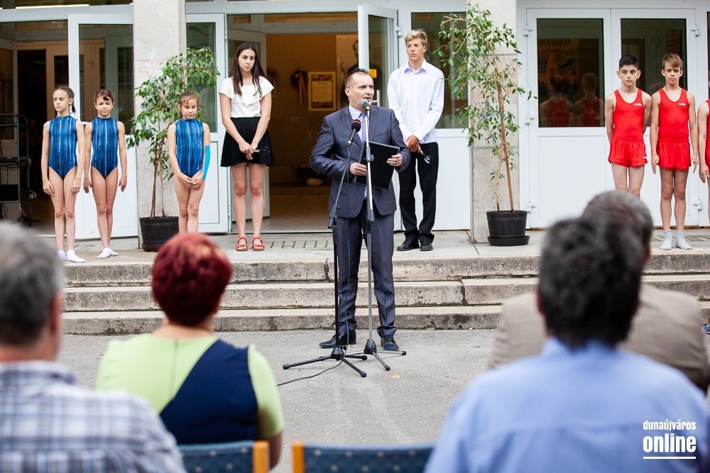 Ebbe az iskolába járt annak idején városunk díszpolgára, dr. Dorkota Lajos is, aki személyes emlékeit idézve méltatta az iskola sporttagozatos szellemiségét. A beruházás kapcsán gratulált a tervezőknek, a kivitelező Renapin Kft-nek, megköszönte a kivitelezésben nyújtott türelmét a pedagógusoknak és a szülőknek, valamint dr. Galambos Dénesnek azt, hogy országgyűlési képviselőként kiharcolta a forrásokat a projekthez. Mint mondta, az elmúlt nyolc évben számos fejlesztés valósult meg városunkban, épül-szépül Dunaújváros, és kívánta, hogy ez így folytatódjon a jövőben is.