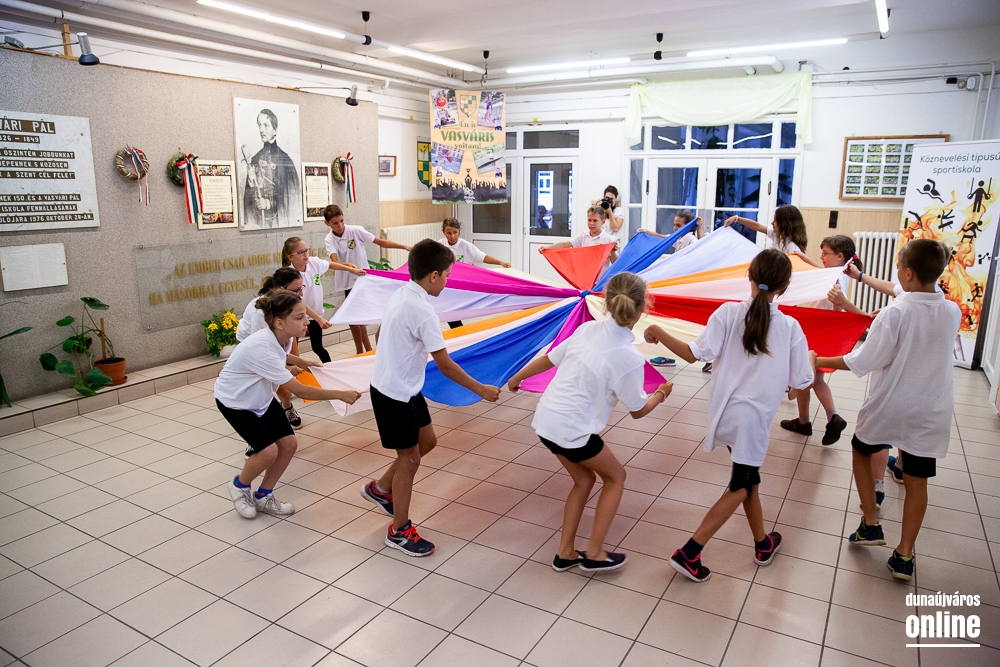 Mint azt Cserna Gábor beszédében elmondta, a Terület és Településfejlesztési Operatív Program (TOP) forrásából valósult meg a beruházás, amellyel megújulhatott az első belvárosi iskolánk. Dunaújváros büszkén viseli már 2000 óta a nemzet sportvárosa címet, a Vasvári iskola képzése pedig a sportra épül. Hogy az itt tanult és tanuló fiatalok milyen sokféle sportágban jeleskednek, azt a megnyitón is láthattuk, ugyanis a fiatalok élő-szoborparkként mutatták be választott sportágukat a tornászoktól kezdve az úszókon, búvárúszókon, jégkorongozókon, kézilabdázókon, vízilabdázókon, bokszolókon át a labdarúgókig. A polgármester arról is szólt, hogy az állagmegóvó munkálatok után szigetelték az épületet és új nyílászárókat szereltek fel, emellett a bejáratnál akadálymentesített feljárás is biztosított. Mint mondta, a kivitelező Renalpin Kft-nek nem volt egyszerű dolga, hiszen az épület műemléknek számít, így a felújítást speciális előírások mentén kellett elvégezni, és a bejárat fölötti domborművet is eredeti állapotában kellett hagyni.
