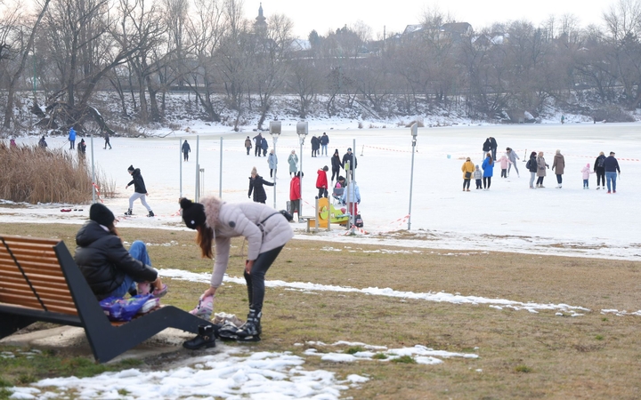 A tél idén nemcsak a havat hozta magával, hanem egy rég nem tapasztalt élményt is: a tartós mínuszoknak köszönhetően a Szalki-sziget szabadstrand felőli oldalán olyan vastagra fagyott a jég, ami alkalmas a korcsolyázásra is.