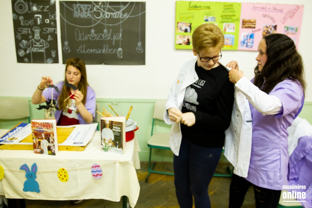 Idén is biztosra ment a Kereskedelmi iskola és mindenki szívét a hasán keresztül próbálta meg elnyerni. Szinte minden tanteremből áradtak a jobbnál jobb illatok, a látogatók pedig a hamburgeren át a savanyúságig, a süteményeken át a zöldségekig mindent megkóstolhattak. Falatozás közben pedig megismerkedhettek a pincérek munkájával, a séfek feladataival és még a szalvétahajtogatással is.