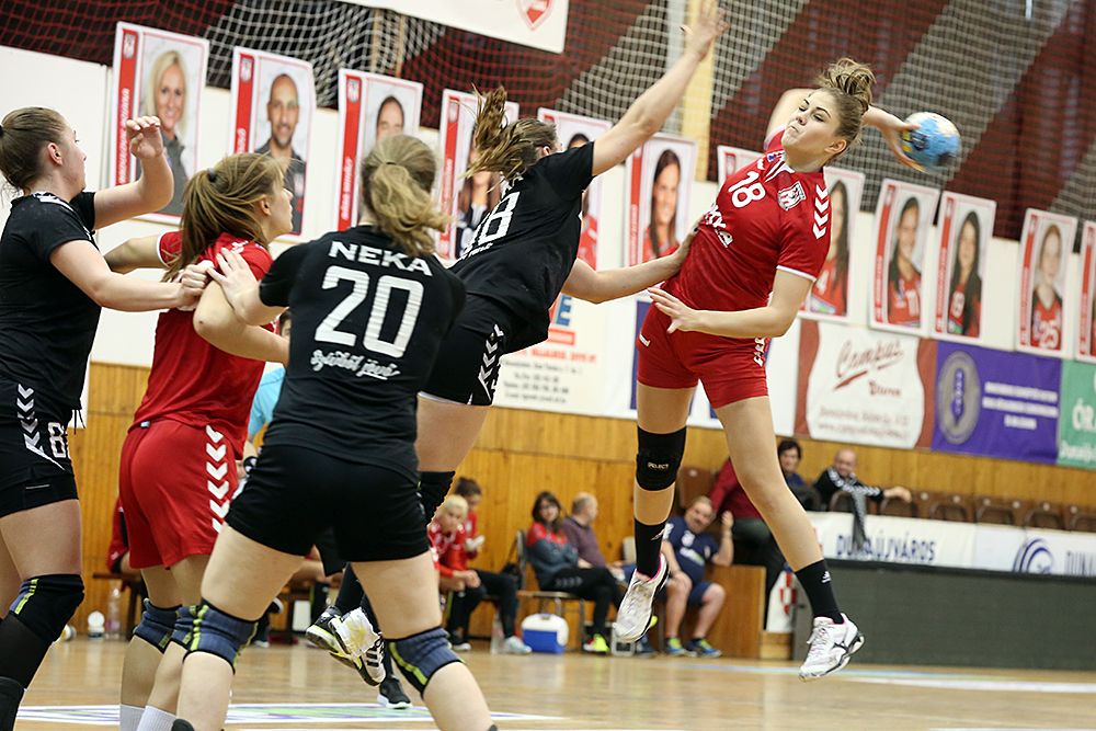 A mieink azonban ennek ellenére is jól kezdték a mérkőzést, Koronczai és Gengeliczky góljaival sikerült korán háromfás előnyt szerezniük, ám a vendégek az első félidő derekára ledolgozták hátrányukat (8-8). A folytatásban több hibát is elkövettek támadásban a dunaújvárosi fiatalok, s ezt könyörtelenül kihasználta az ellenfél, mely négy góllal meglépett a mieinktől, s ugyan a játékrész utolsó tíz percében újra pontosabban játszottak kézilabdázóink, a szünetre a NEKA vonulhatott 15-12-es vezetéssel.