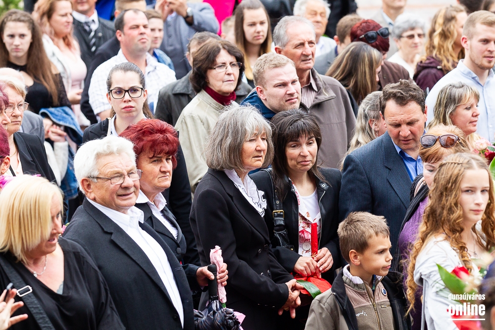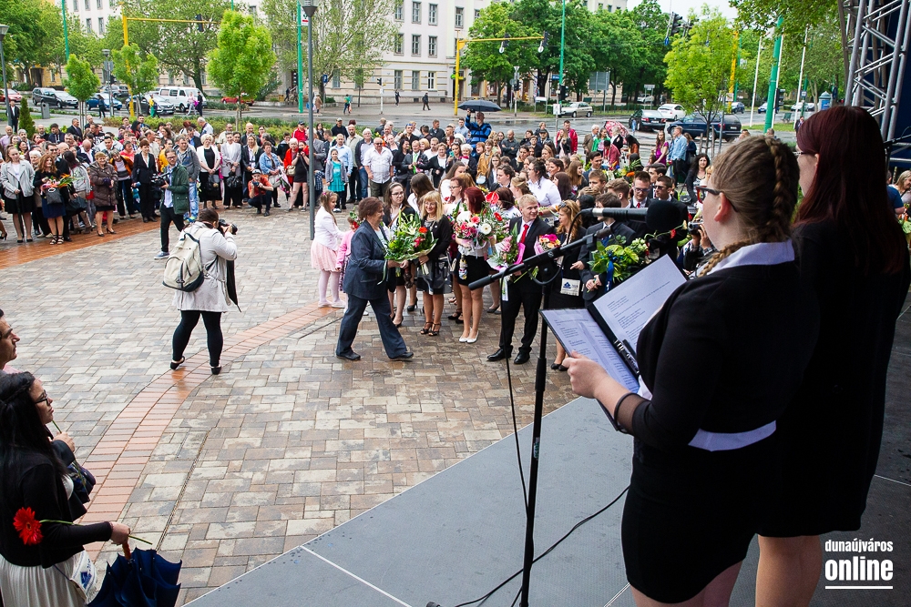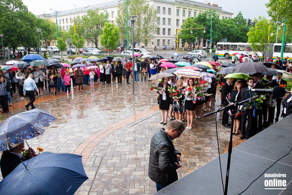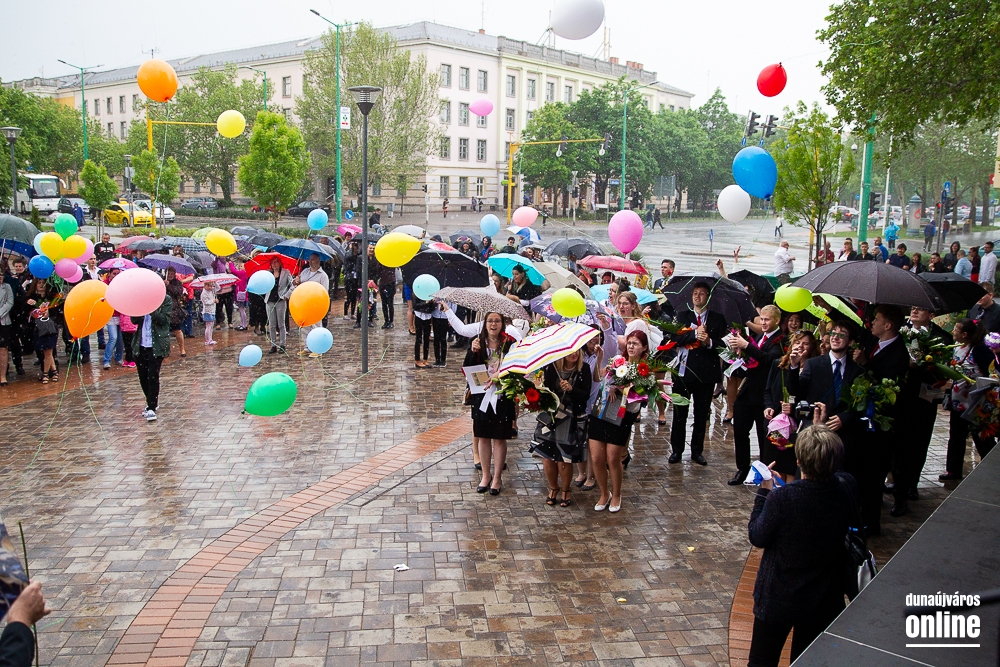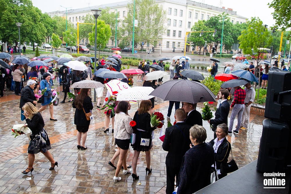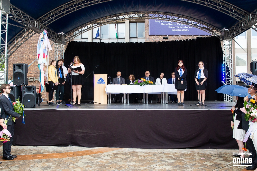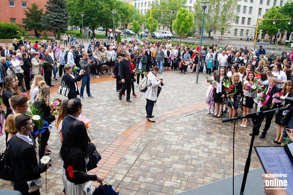 - Minden évben az egyik középiskolánk végzős tanulói Dunaújváros főterén vesznek búcsút diáktársaiktól, tanáraiktól. Örülök, hogy Önök is immár ennek a szép hagyománynak a részesei. A mai nappal elhagyják az eddigi iskolájuk által nyújtott és megszokott biztonságot, búcsút intenek barátoknak, és egy újabb lépést tesznek a felnőtté válás felé. S bár új utakra lépnek, ahogyan a dal is mondja, „a lánc, mi összeköt, nem hullhat szét”, mindig összeköti majd Önöket a kihívásokban, de boldog élményekben is gazdag középiskolás időszak. Az elsajátított ismeretanyagon kívül, olyan értékekkel is gazdagodtak az évek során, melyek a „nagybetűs életben” segítik az útjukon! Megtanulták mi a küzdőszellem, mit jelent a célok megvalósítása, miért fontos egy közösség, és melyek a legfőbb értékek. Bizonyára lesznek majd csalódások és kudarcok, de ezekből építkezve válnak majd felelősségteljes felnőtté, és végül mindig új és új célokat kell kitűzniük maguk elé – mondta a polgármester, majd a diákok jövőjére kitekintve a következőket mondta:
