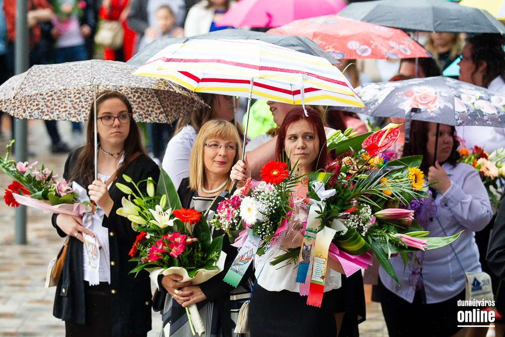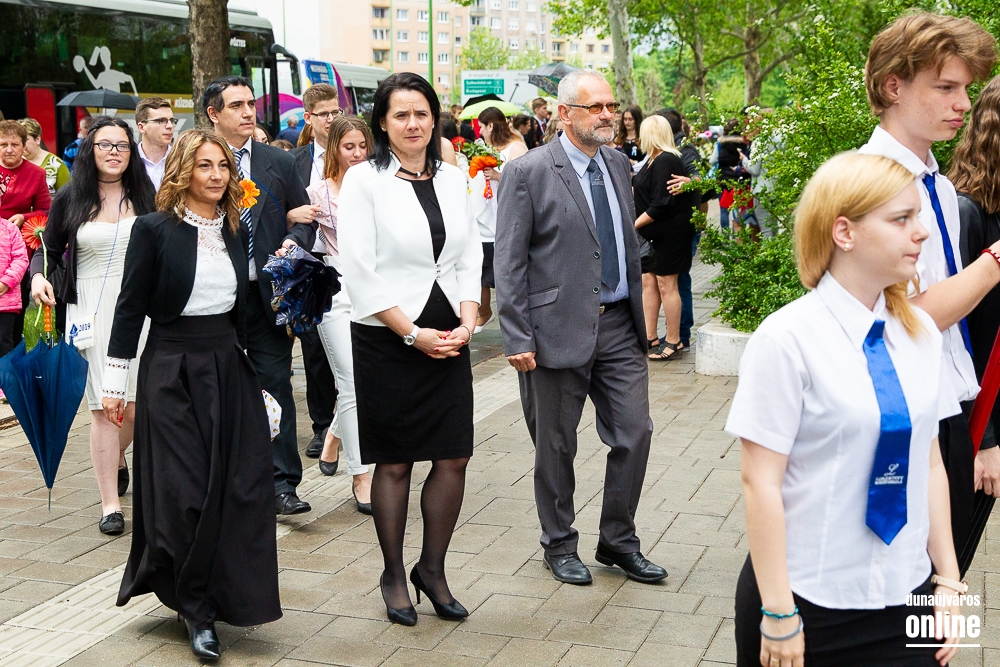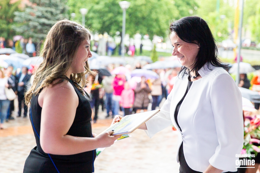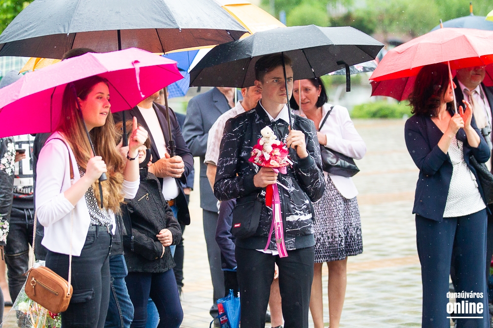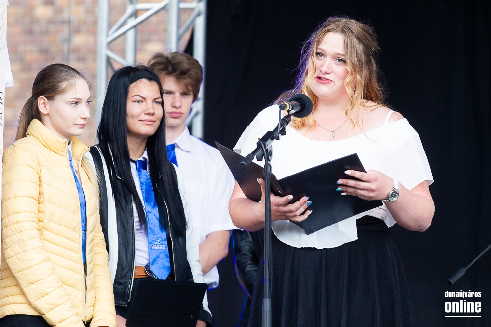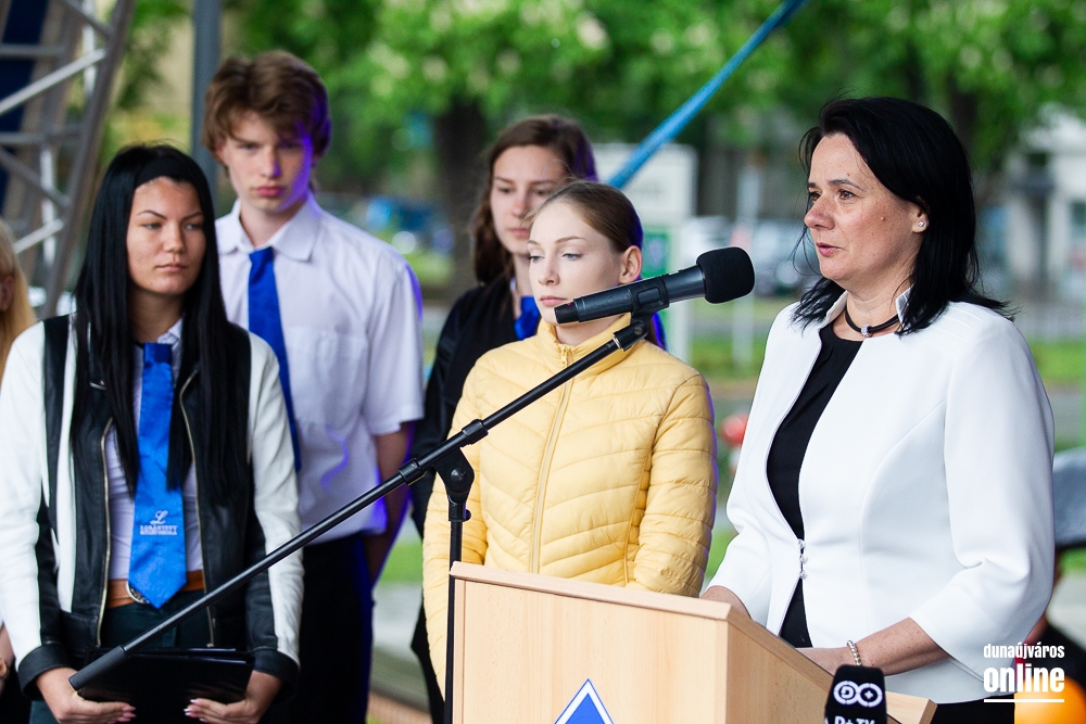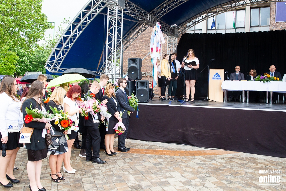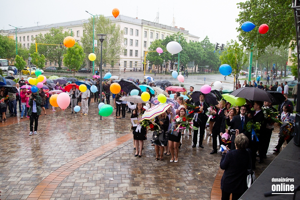 - Minden évben az egyik középiskolánk végzős tanulói Dunaújváros főterén vesznek búcsút diáktársaiktól, tanáraiktól. Örülök, hogy Önök is immár ennek a szép hagyománynak a részesei. A mai nappal elhagyják az eddigi iskolájuk által nyújtott és megszokott biztonságot, búcsút intenek barátoknak, és egy újabb lépést tesznek a felnőtté válás felé. S bár új utakra lépnek, ahogyan a dal is mondja, „a lánc, mi összeköt, nem hullhat szét”, mindig összeköti majd Önöket a kihívásokban, de boldog élményekben is gazdag középiskolás időszak. Az elsajátított ismeretanyagon kívül, olyan értékekkel is gazdagodtak az évek során, melyek a „nagybetűs életben” segítik az útjukon! Megtanulták mi a küzdőszellem, mit jelent a célok megvalósítása, miért fontos egy közösség, és melyek a legfőbb értékek. Bizonyára lesznek majd csalódások és kudarcok, de ezekből építkezve válnak majd felelősségteljes felnőtté, és végül mindig új és új célokat kell kitűzniük maguk elé – mondta a polgármester, majd a diákok jövőjére kitekintve a következőket mondta: