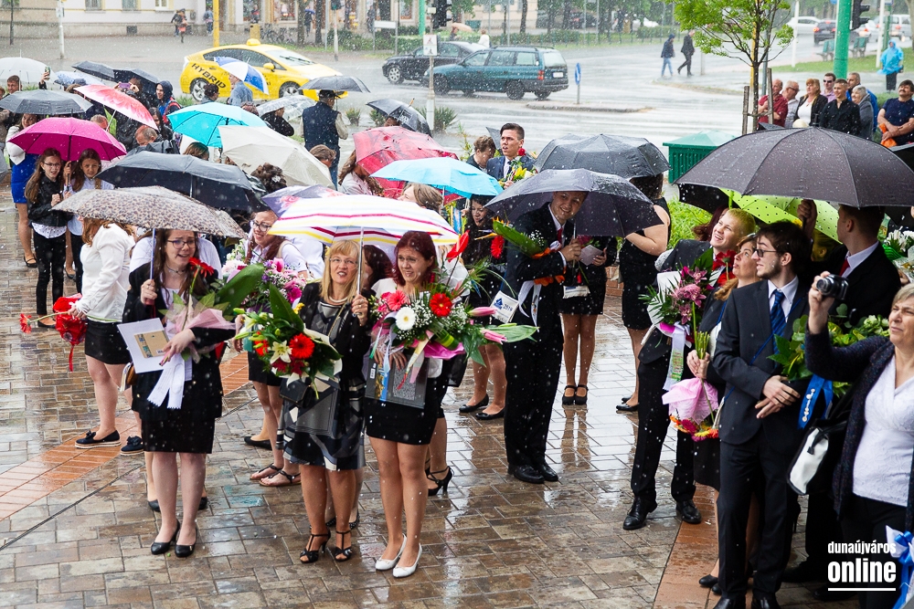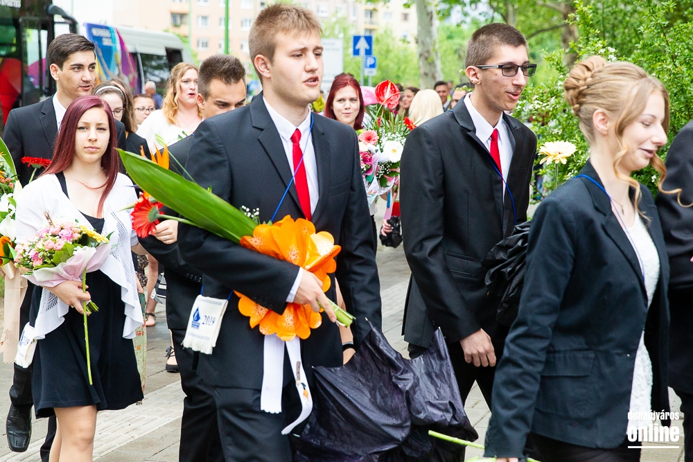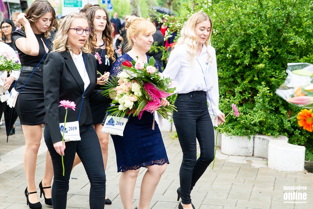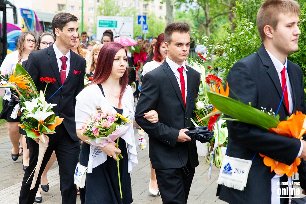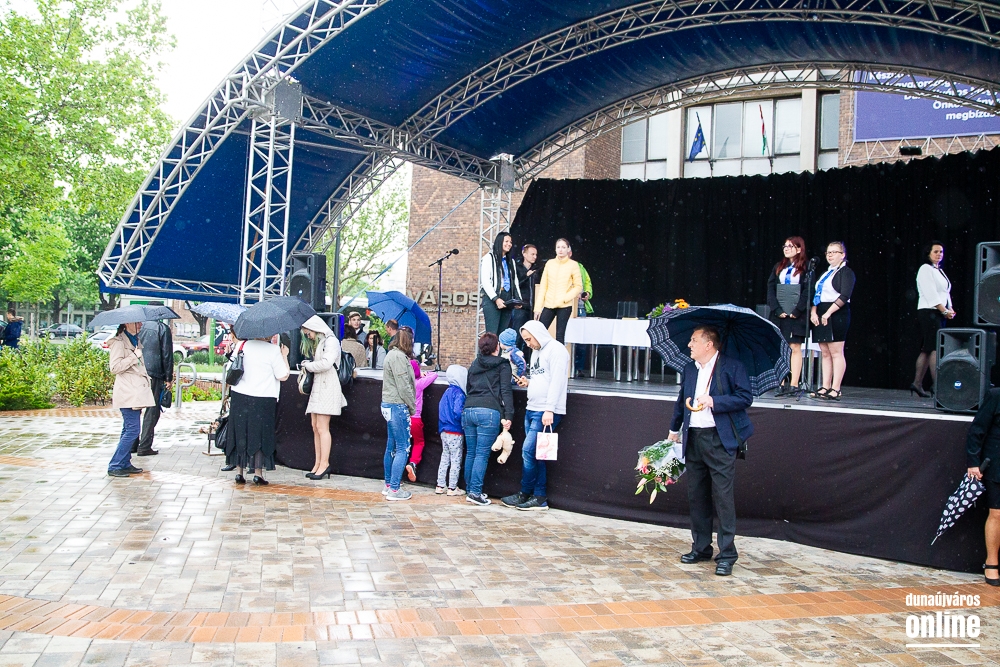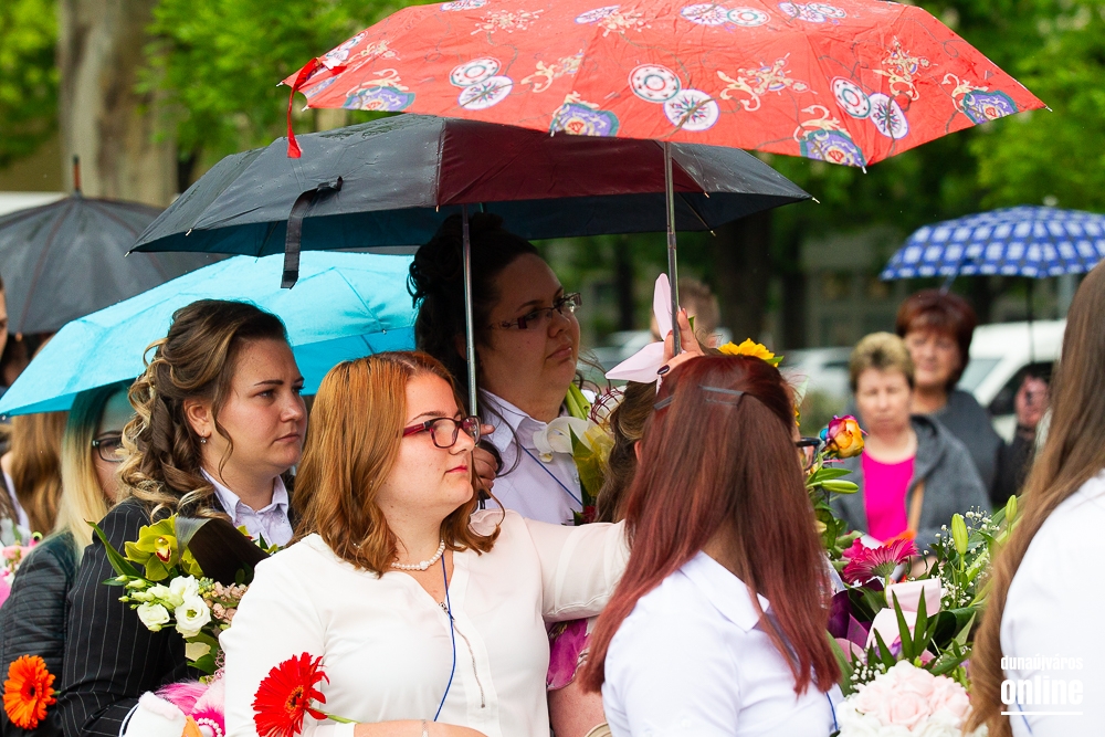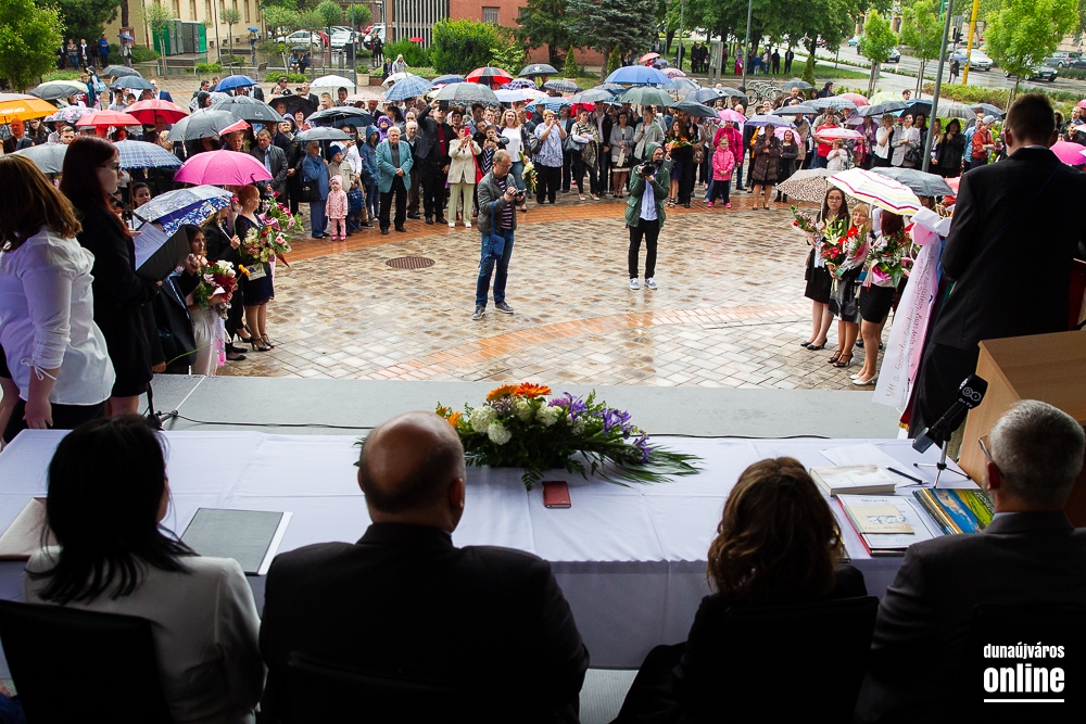 - Minden évben az egyik középiskolánk végzős tanulói Dunaújváros főterén vesznek búcsút diáktársaiktól, tanáraiktól. Örülök, hogy Önök is immár ennek a szép hagyománynak a részesei. A mai nappal elhagyják az eddigi iskolájuk által nyújtott és megszokott biztonságot, búcsút intenek barátoknak, és egy újabb lépést tesznek a felnőtté válás felé. S bár új utakra lépnek, ahogyan a dal is mondja, „a lánc, mi összeköt, nem hullhat szét”, mindig összeköti majd Önöket a kihívásokban, de boldog élményekben is gazdag középiskolás időszak. Az elsajátított ismeretanyagon kívül, olyan értékekkel is gazdagodtak az évek során, melyek a „nagybetűs életben” segítik az útjukon! Megtanulták mi a küzdőszellem, mit jelent a célok megvalósítása, miért fontos egy közösség, és melyek a legfőbb értékek. Bizonyára lesznek majd csalódások és kudarcok, de ezekből építkezve válnak majd felelősségteljes felnőtté, és végül mindig új és új célokat kell kitűzniük maguk elé – mondta a polgármester, majd a diákok jövőjére kitekintve a következőket mondta: