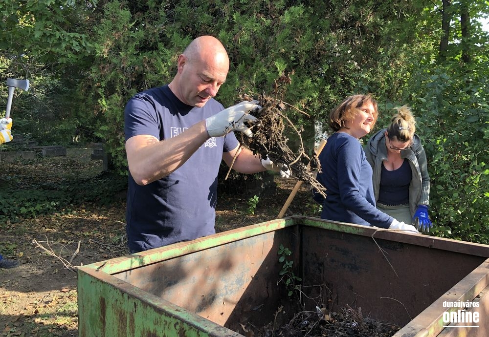 Szemeteszsákokkal a kezükben jövő- menő emberek, láncfűrésszel gallyazó tűzoltó, a munkát szervező, az embereket szerszámokkal ellátó, a feladatokból is részt vállaló képviselő: ez a látvány fogadta szombaton délelőtt a Pentelei kistemetőbe érkező stábunkat.