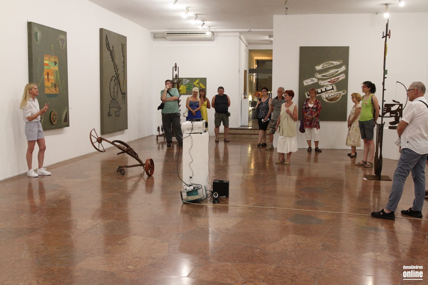 Teljesen más koncepcióval vágott a szombat estének az ICA-D: Móder Rezső Munkácsy-díjas dunaújvárosi képzőművész Lebegő ellenállások című tárlatához kapcsolódó programot szerveztek. A program fő attrakciójának Zsinka Gabriella művészettörténész, az intézmény művészeti igazgatója tárlatvezetése bizonyult, aki egyszerre a kiállítás kurátoraként és elkötelezett Móder-rajongóként adott példás summázatot a különlegesen gazdag és különlegesen koherens életmű évtizedeiről.