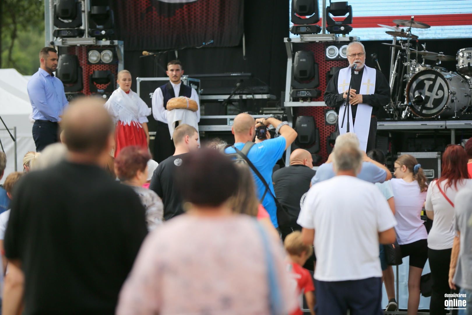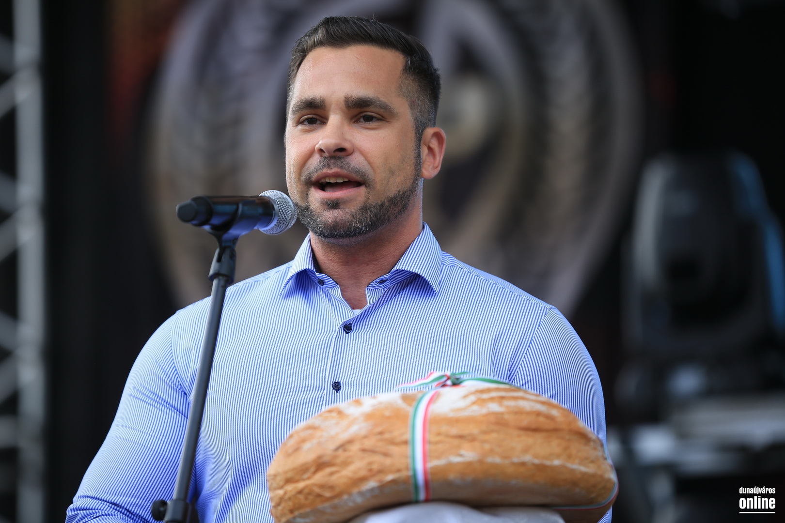 Az új kenyér megszentelése során a történelmi egyházak képviselői szintén a hálaadás, a hitelvek és az összefogás jelentőségét hangsúlyozták, majd az új kenyér megszegése után a város vezetői – Pintér Tamás polgármester mellett Barta Endre és Mezei Zsolt alpolgármester – vállaltak szerepet a kenyérosztásban.  Az ünnepi blokk végén Gasparik Gábor, a Bartók Kamaraszínház színművésze tolmácsolta a Szózatot, majd a gazdag színpadi kínálattal folytatódott (és tart e sorok papírra vetésekor is) az augusztális színpadi műsora.