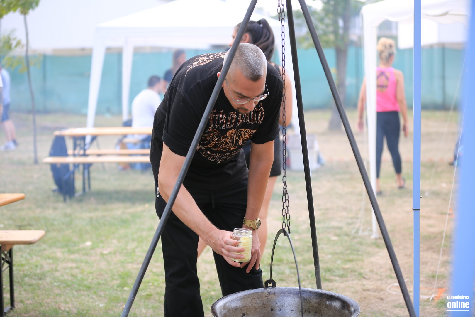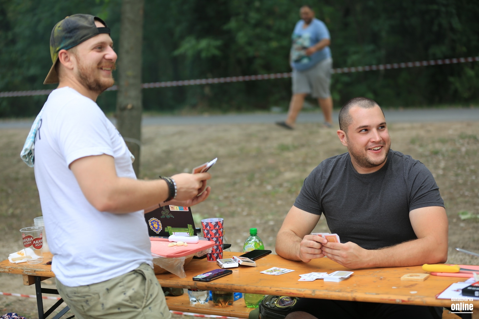 A helyszín – eddig is tudtam, de itt egy újabb bizonyíték – remek, az asztalok ligetes részbe telepítése parádés ötlet, és azt is jól eltalálták a szervezők, hogy már kora délután nekiláthattak a csapatok a sütögetésnek, főzőcskének. Másfél kör megtétele után körülbelül az jött le, amit amúgy is vártam: a baráti társaságok pompás változatossággal vágtak a feladatnak, a Parázs-Varázs lényege új időben, új helyen is maradt, ami volt – a város meghatározó közösségi eseménye, jókedvű, életigenlő, nagyon vidám, nagyon mosolygós, nagyon oldott és nagyon bulista megmozdulása.