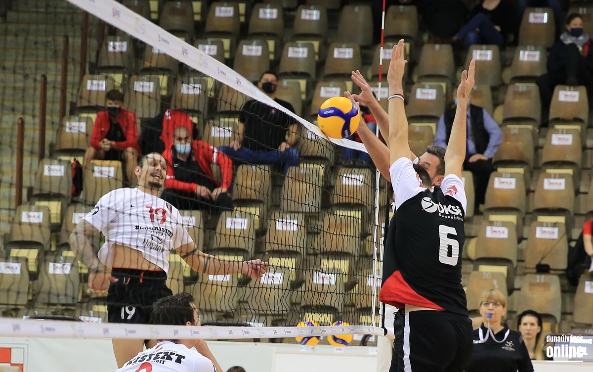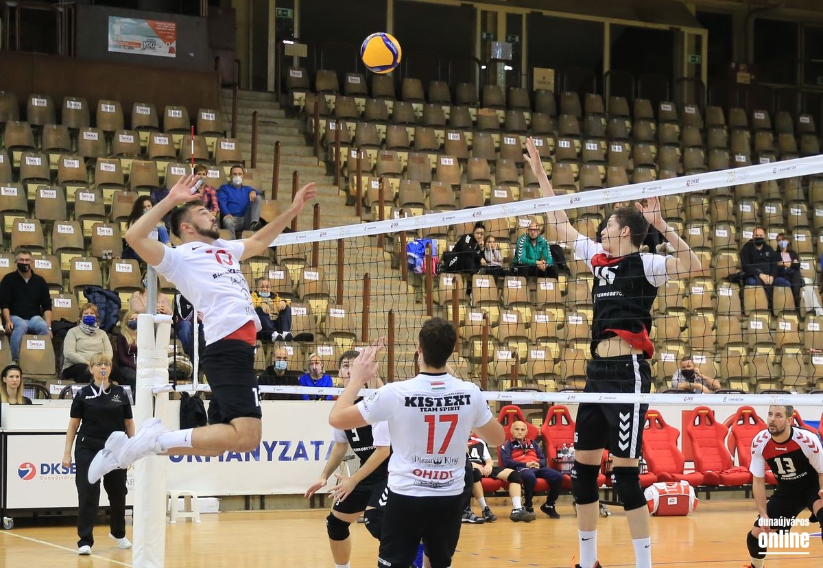 Az újabb térfélcserét követően jobban tartotta magát együttesünk, mint korábban, de így is volt miért szomorkodni, mert egy rossz leérkezést követően Winter László súlyosnak tűnő lábsérülést szenvedett (5-5). Társuk kiválása meg is zavarta a mieinket, a következő három pontot a Kistext érte el, de kapaszkodott a DKSE, s Kecskeméti pontjai után már a vendégeknek kellett időt kérniük (13-13). Kalmár duplája után kettővel lépett el a vendégcsapat, de egy 4-0-s sorozattal fordítottak a mieink, s miután Hatvany és Szabó is jól fejezett be egy támadást, már 21-17-et mutatott az eredményjelző. Ekkor sajnos nagyon beragadtak a mieink, egymás után négyszer volt eredményes a Kistext, mely 23-nál a vezetést is átvette, majd egy jó sánccal lezárta az összecsapást, s 3-0-s győzelemmel vitte el a három pontot Dunaújvárosból.