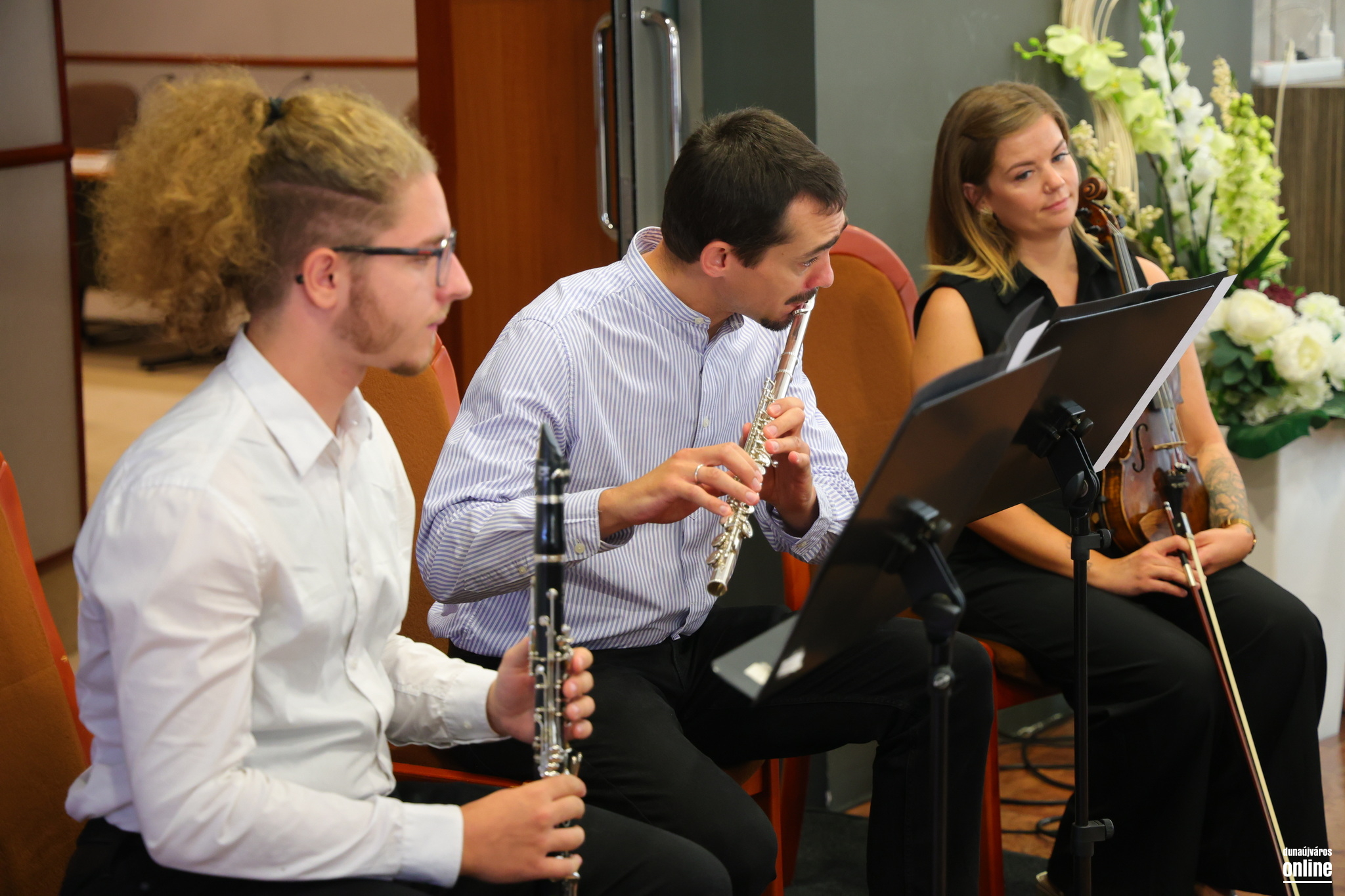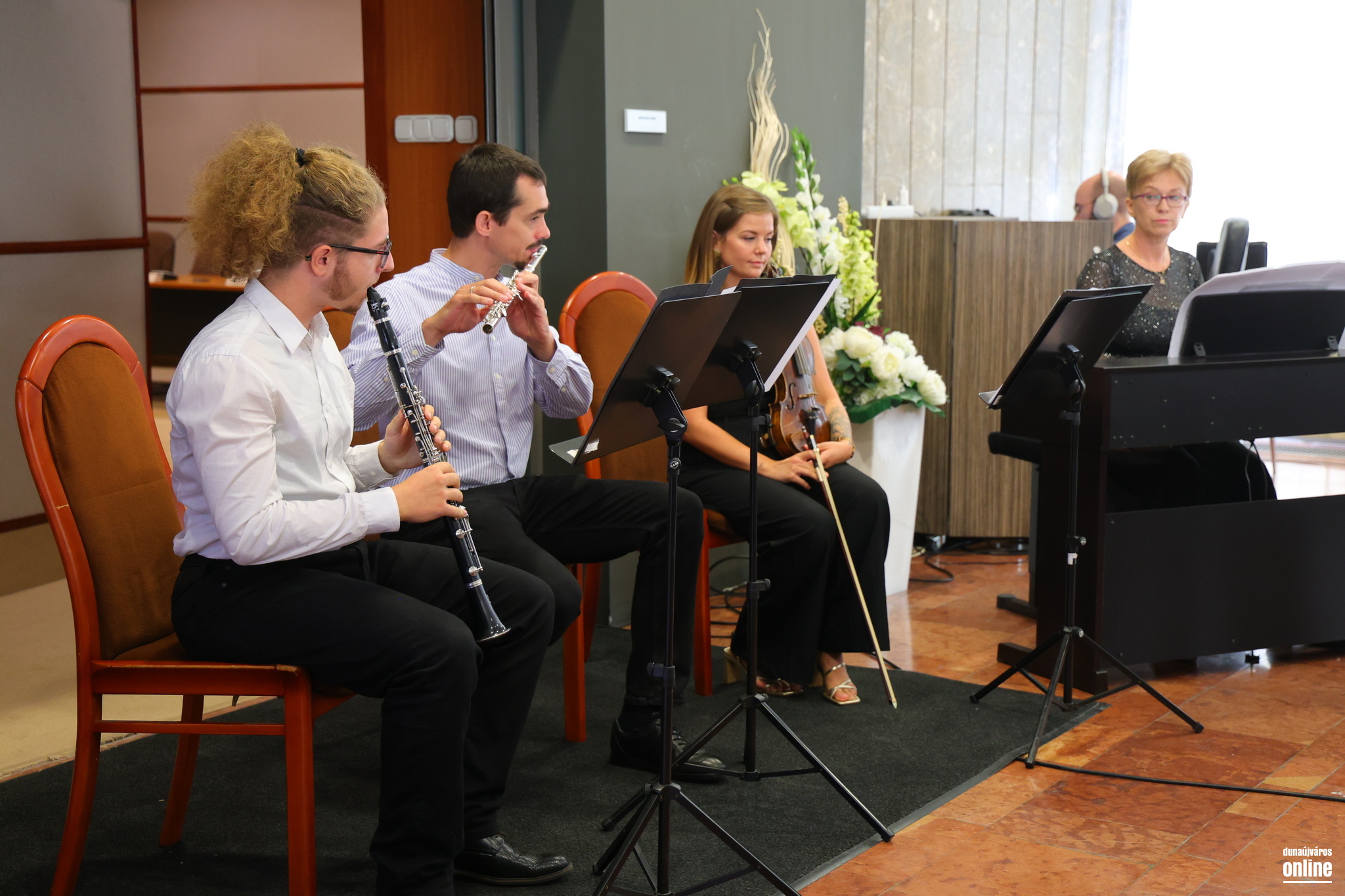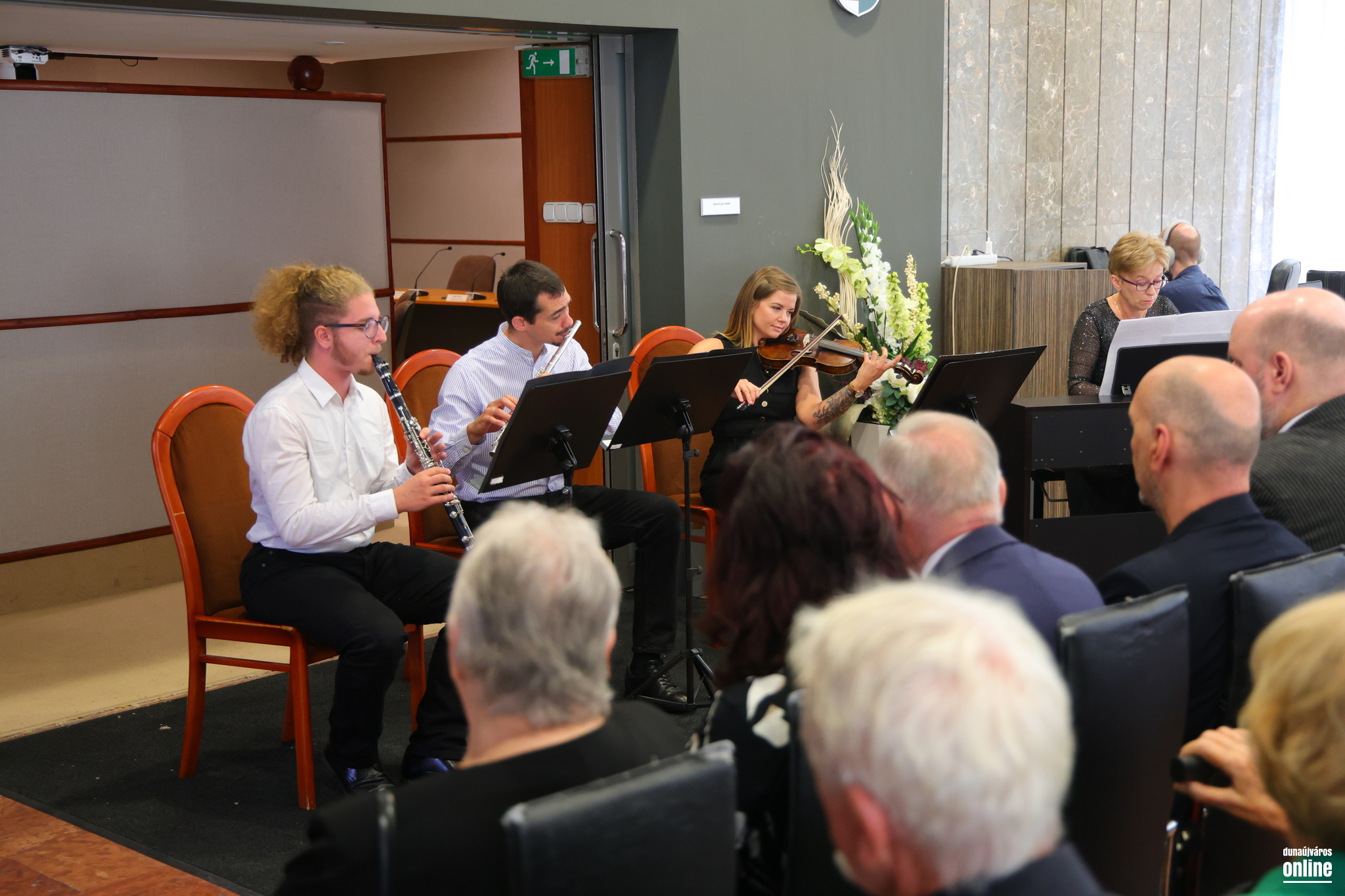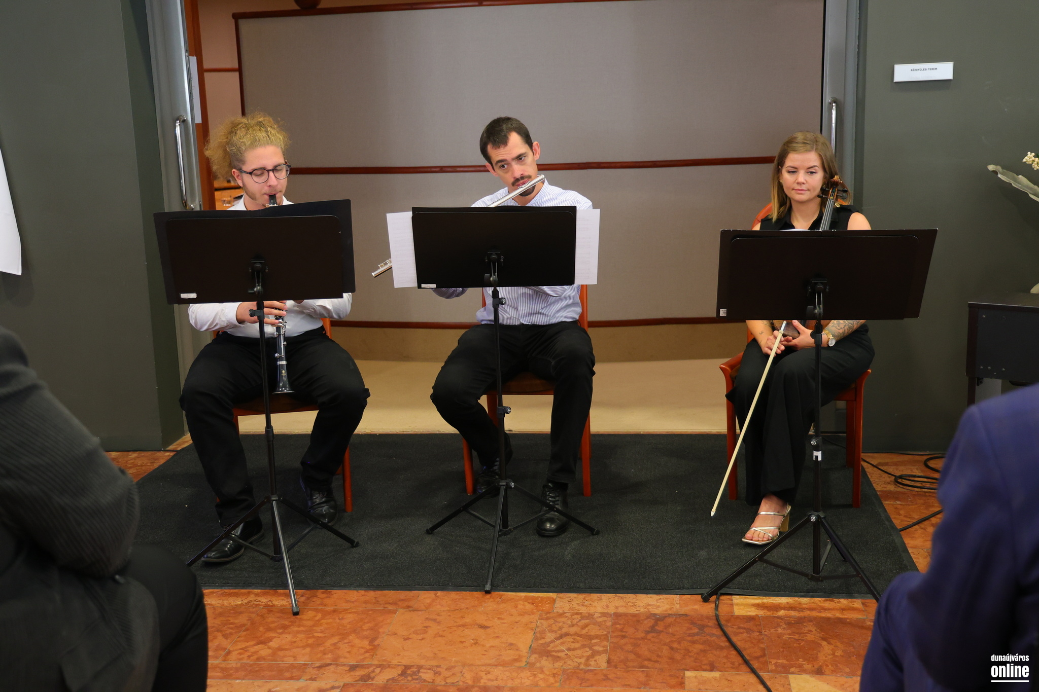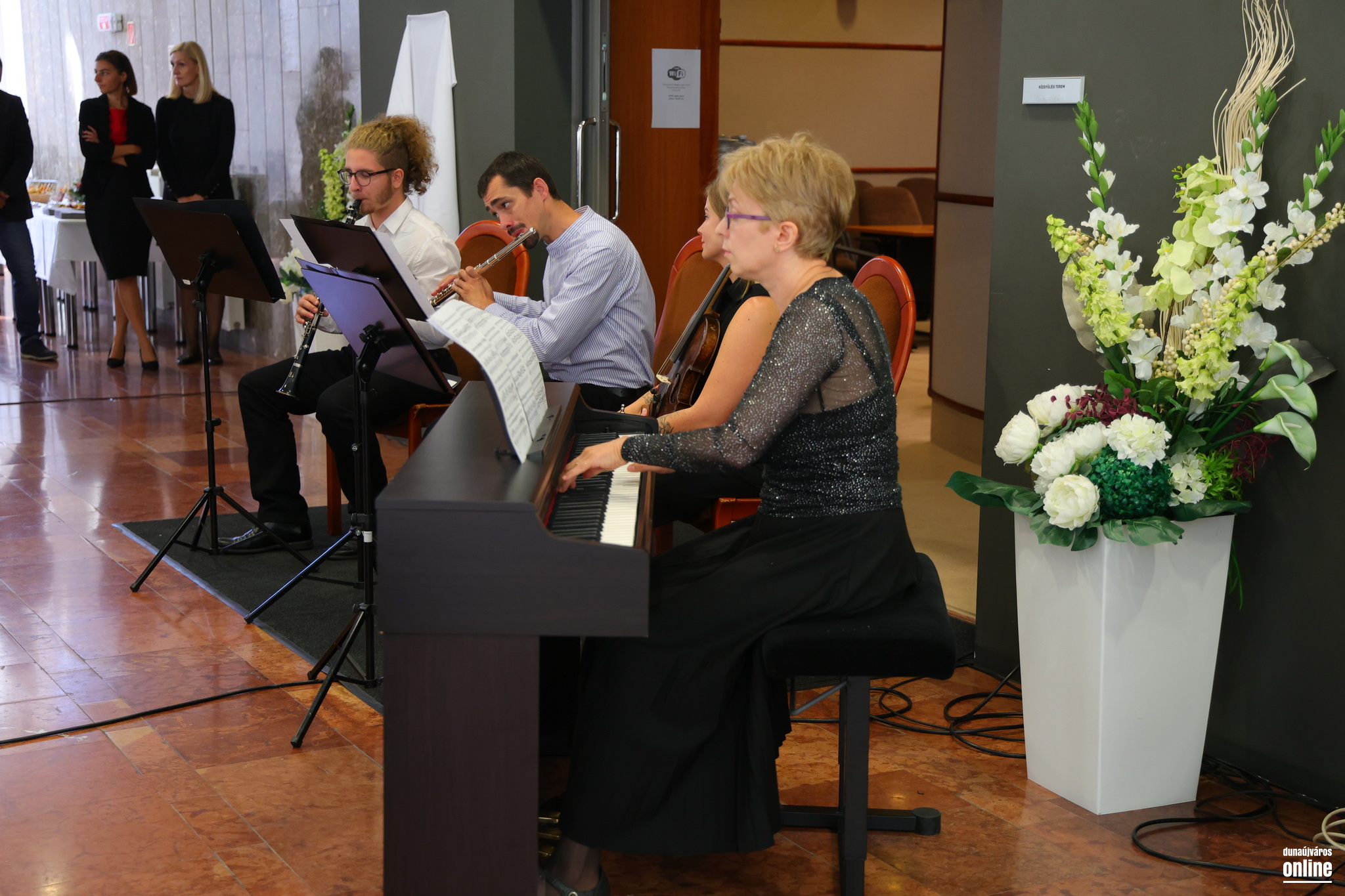 Az ünnepi program utolsó felvonásaként a Sándor Frigyes Zeneiskola alkalmi kvartettje adott rövid koncertet – Beethoven, Saint-Saëns és Carlos Gardel alkalomhoz illő tónusú szerzeményeiből válogatva –, majd Almási M. Anna és Pintér Tamás leplezte le az Almási Zsolt terem bejáratánál az elhunyt polgármester emléktábláját.