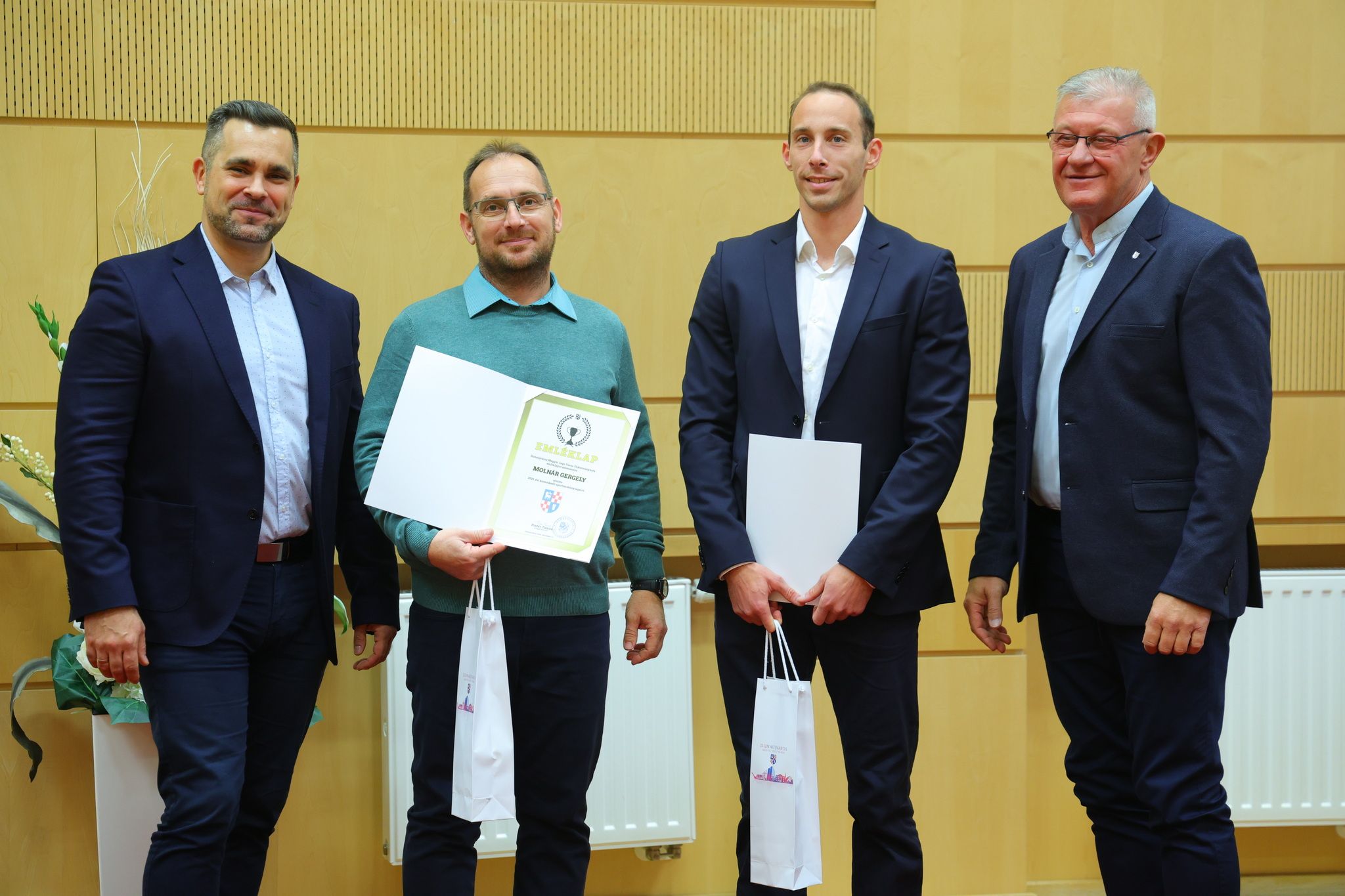 – Mikor elértétek idei sikereiteket, már volt alkalmunk köszönteni titeket, most viszont jó egy kicsit fújni egyet és visszanézni a mögöttünk lévő esztendőre. Elmondhatjuk, hogy Dunaújvárosban ismét egy jó évet zárt a sportélet nektek köszönhetően és a város minden lakosa büszke lehet erre. Bár nem szeretek kiemelni ilyenkor senkit, most mégis meg kell tennem, mert Hajdu Jonatánnak és Mátyás Gábornak köszönhetően két világbajnoki címmel gazdagodtunk, ami óriási szó.