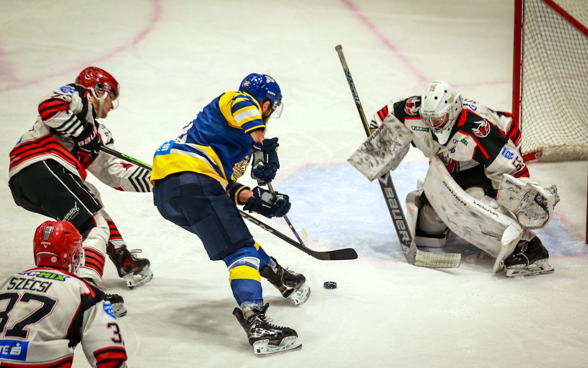 Pedig sajnos így történt, mert saját kapujuk előtt sajnos nem koncentráltak eléggé Acélbikáink, így a hazaiak a 36. percben egalizáltak, majd a szünetig még újabb két gólt szerezve léptek el 5-3-ra. A harmadik felvonásban sem változott a játék képe, sokkal hatékonyabbak voltak a vendéglátók, akik a 49. és az 57. perc alatt négyszer is bevették a dunaújvárosi kaput, s végül 9-3-as győzelemmel tartották otthon a három pontot a sokáig jól küzdő, de a találkozó második felére széteső Acélbikákkal szemben.
