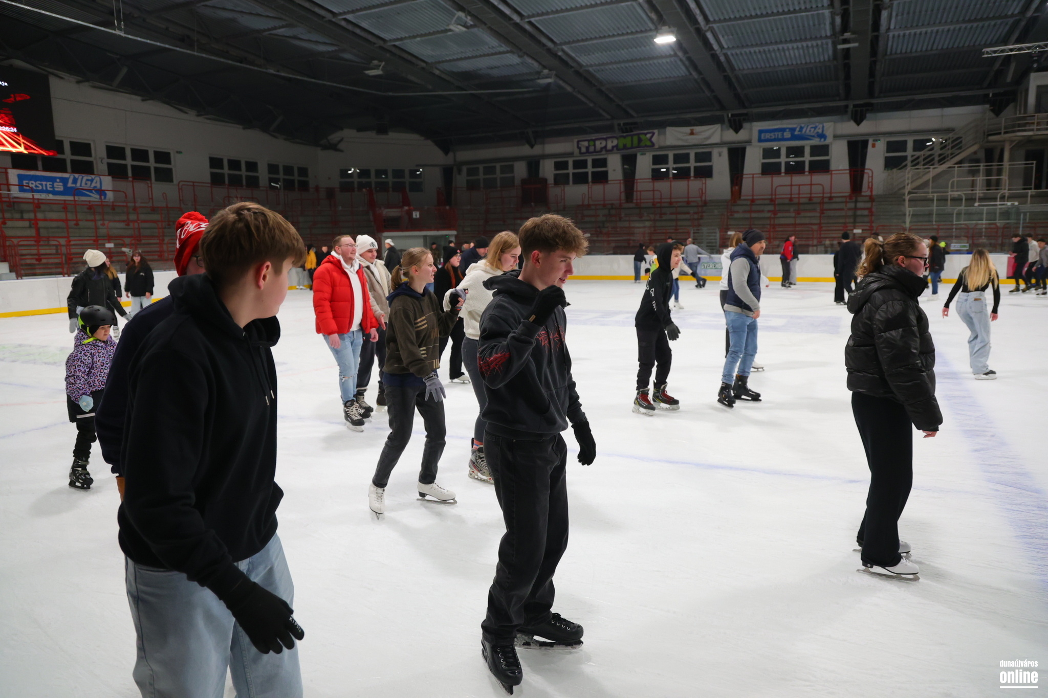 Ahogy az ország több jégpályáján, a Dunaújvárosi Jégcsarnokban is megrendezték az Allianz Jégpályák Éjszakáját szombaton. Ahogy az várható is volt, rengetegen voltak kíváncsiak a programra, melynek felvezetéseként a DAB-ASP és a Szeged Andersen Liga mérkőzését is meg lehetett tekinteni délután, majd öt órától szabadkori, míg este nyolctól egészen fél tizenegyig a jégdiszkón szórakozhatták ki magukat az érdeklődők. A remek hangulatú programon ott voltunk mi is, most pedig képekkel és egy rövid kis videóösszeállítással elevenítjük fel a szombati napot.