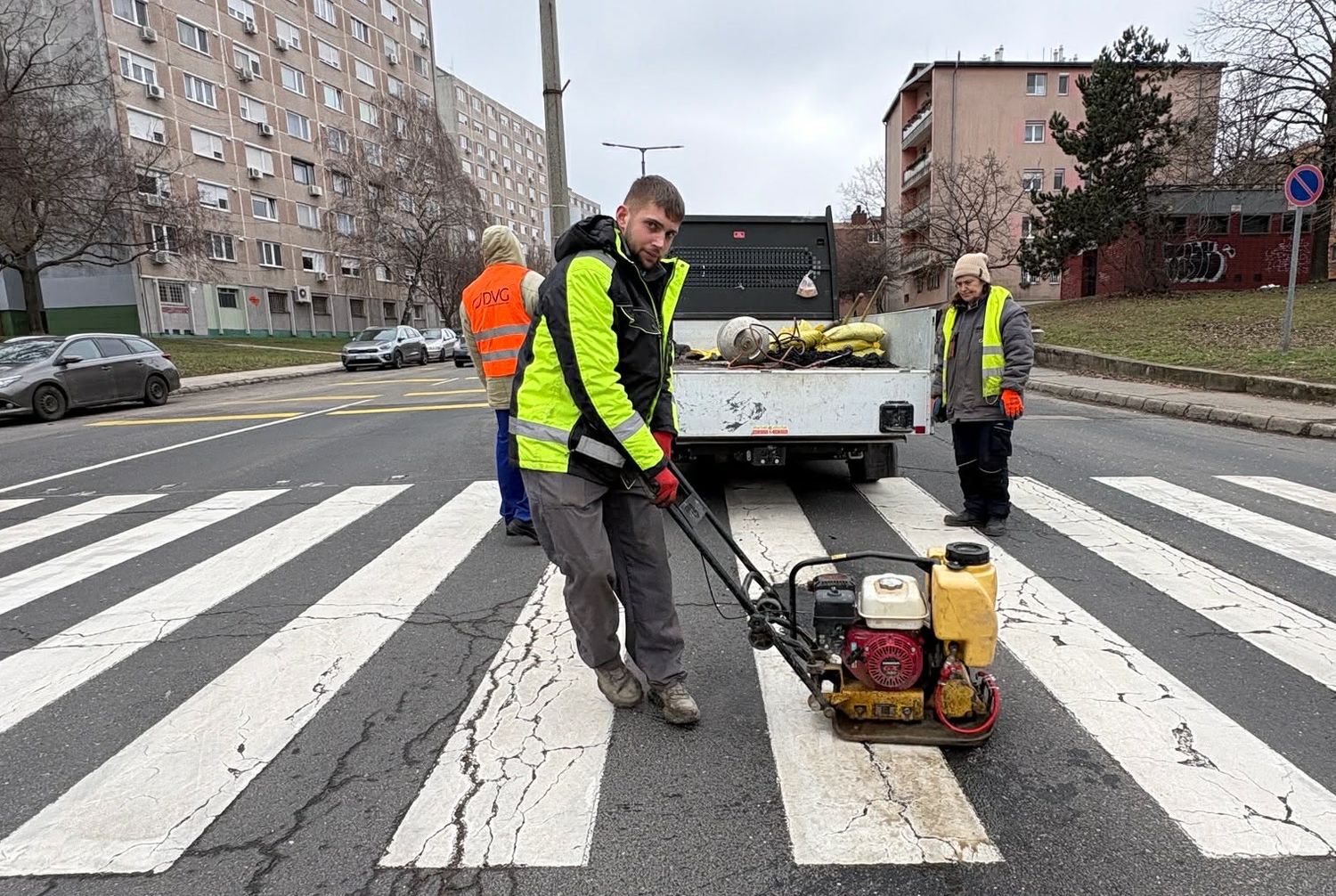A DVG munkálatairól Pintér Tamás polgármester számolt be a közösségi oldalán – ma már két csapat dolgozott a téli fagyások nyomán keletkezett kátyúk betömésén. Amikor nem esik, folytatják.