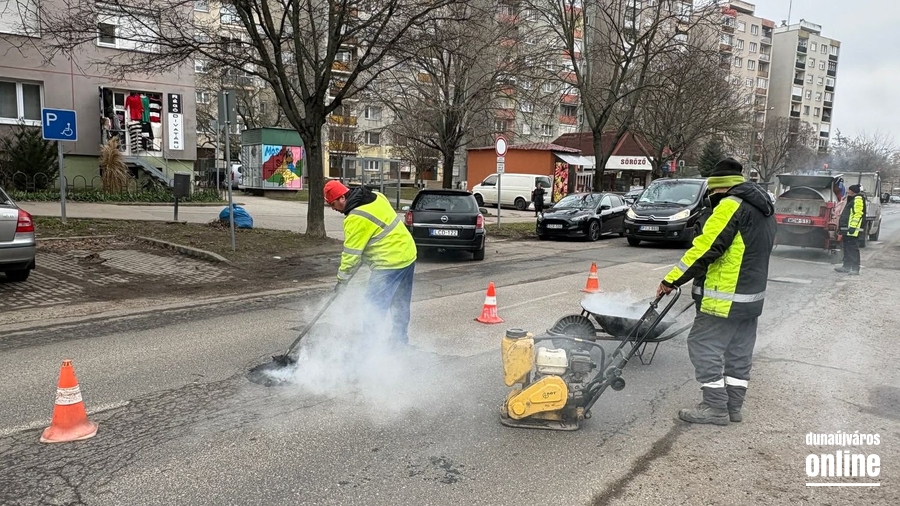 A polgármester még jövő időbe ígérte, most már tudható, hogy így is lett: két csapat is munkába állt mától, és az úgynevezett száraz aszfalttal is dolgoznak. Ez ugyan kevésbé tartós és a gyakran kritizált módszerrel, akár bakanccsal is a kátyúba taposható, viszont gyors megoldást jelent. Természetesen ezt később "rendes" aszfalttal is helyre hozzák Pintér Tamás ígérete szerint.