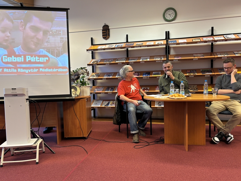 – Igazság szerint én már csak hazajárok a városba, de haza mindig a városba járok – a város mindig is a szívem csücske volt és maradt, és nagyon örülök, hogy a kötetet itt, a József Attila Könyvtárban, ha tetszik, hazai pályán is bemutathatjuk. Itt születtem, itt nőttem föl, itt húztam először korcsolyát 6 évesen, itt kezdődött a sportolói pályafutásom, aztán itt váltam emberré, még családapa is itt lettem. Ezer és ezer szál köt a városhoz, hadd említsek még egyet: a sportolói karrierem végét egy hosszabb fehérvári kitérő után szintén a városban zártam le – méghozzá egy emlékezetes bajnoki címmel!