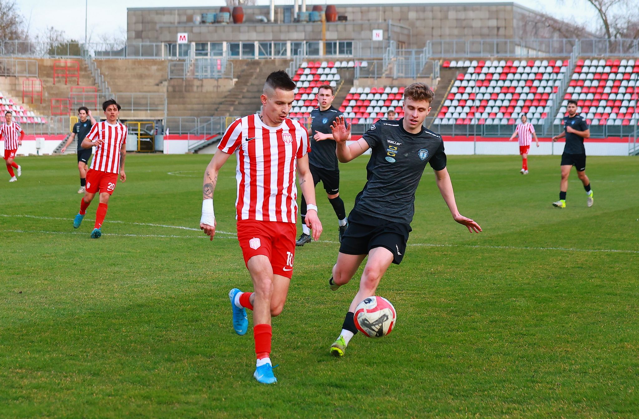 Nem tudott nyerni a PTE-PEAC otthonában a második félidő jelentős részét emberhátrányban játszó Dunaújváros FC labdarúgó csapata az NB III-as pontvadászat hétvégi fordulójában.