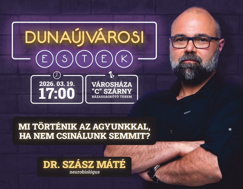 Izgalmas tudományos ismeretterjesztő előadással folytatódik a Dunaújvárosi Estek közéleti sorozata a Városházán csütörtökön: Mi történik az agyunkkal, ha nem csinálunk semmit? címmel dr. Szász Máté neurobiológus előadására várják az érdeklődőket. Flyer a hajtás után!