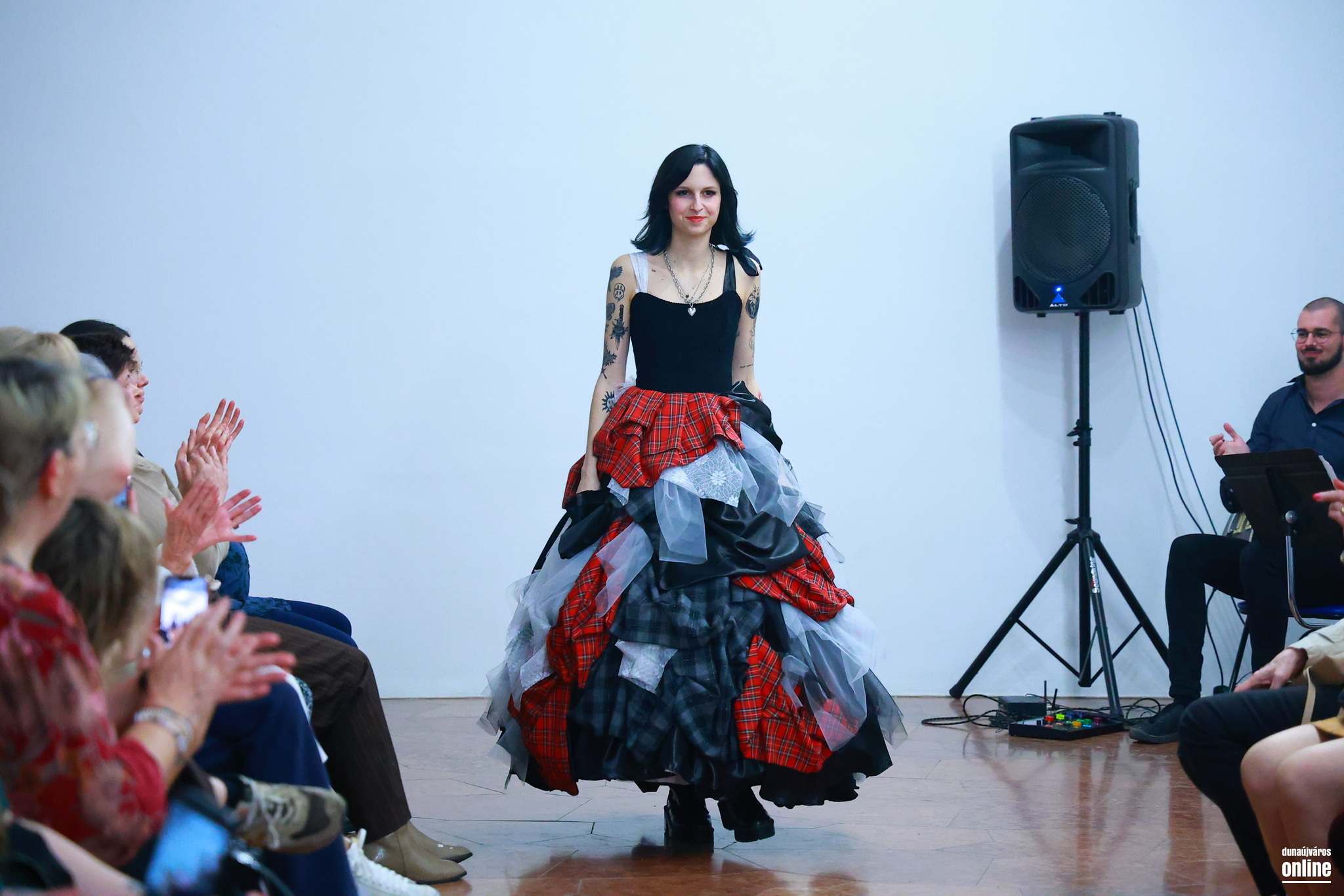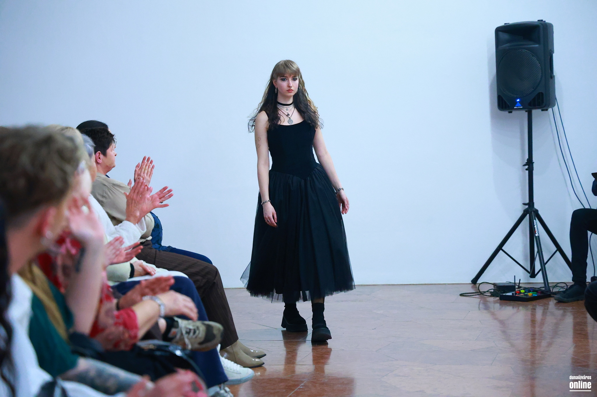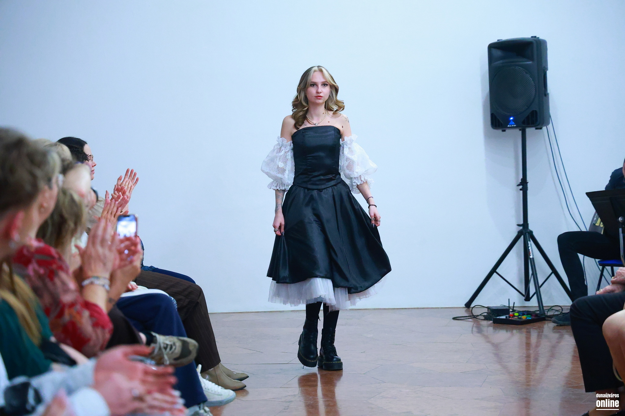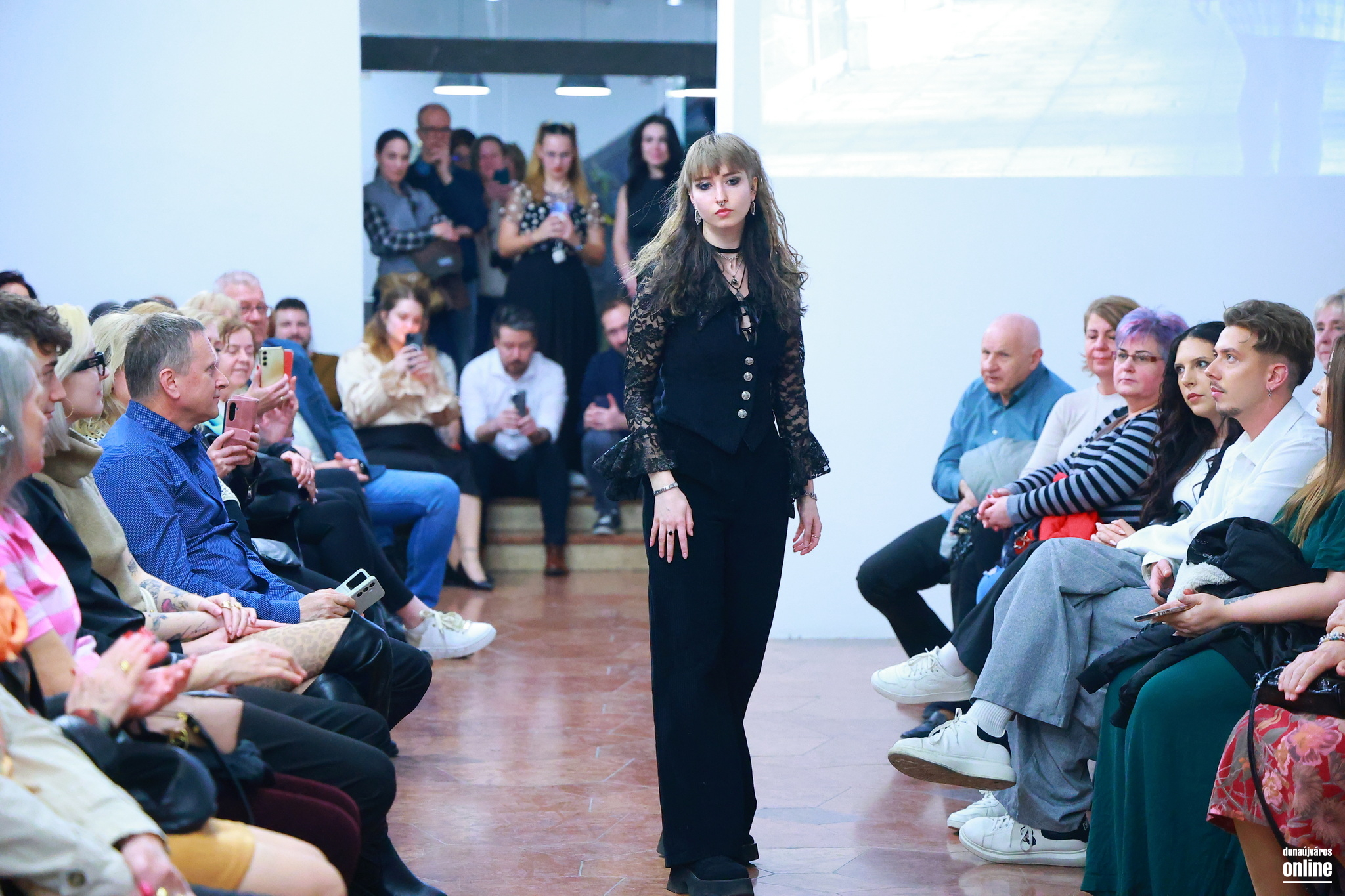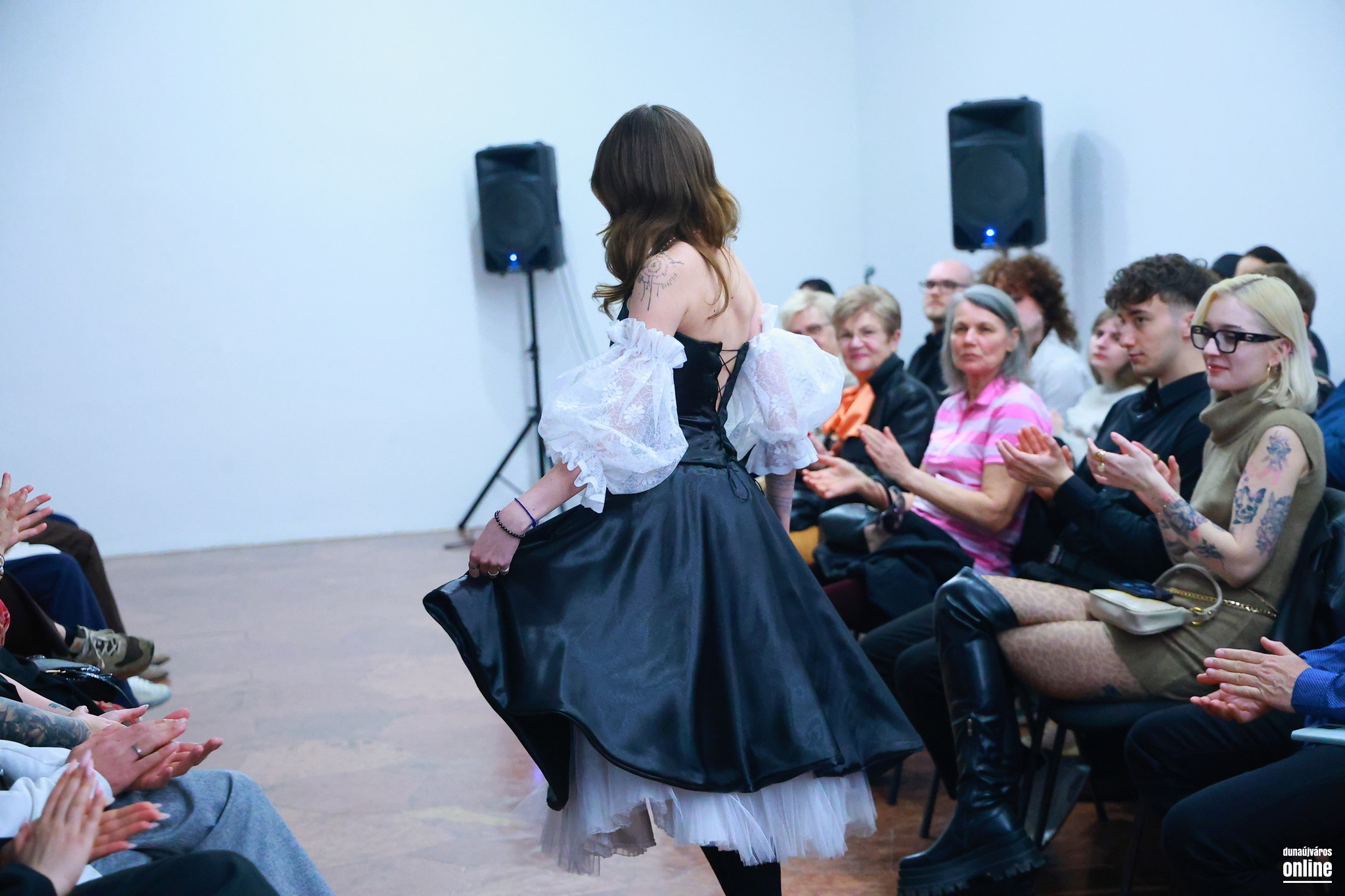A sötét, határozott mintájú szövetek és a könnyed, légies csipkék találkozása jelképezte az életét és személyiségét jellemző kontrasztot és kettősséget – kollégánk, Veres Viktória kollekciójának bemutatójára várták a Kortárs Művészeti Intézet (ICA-D) vendégeit pénteken este.