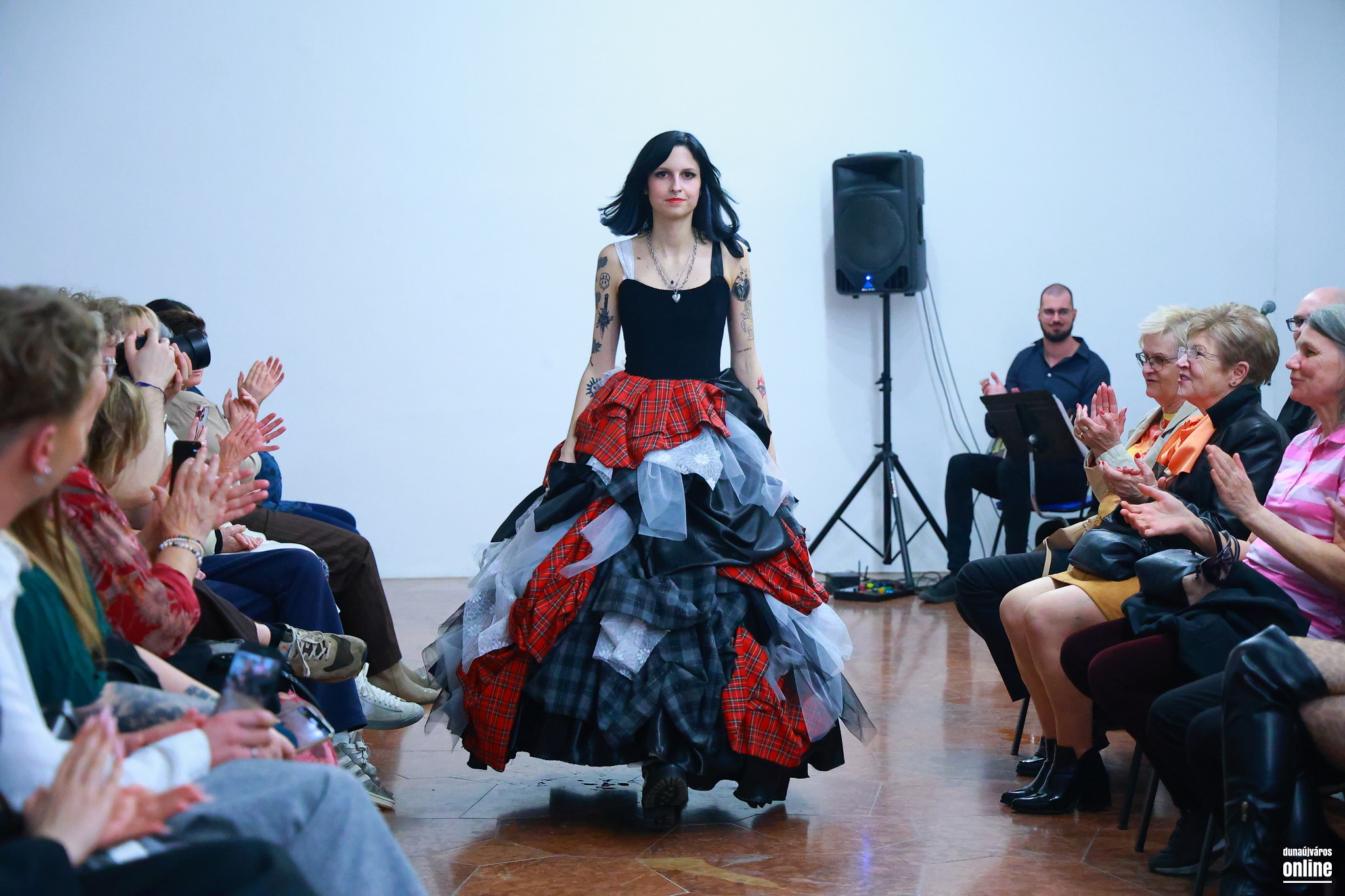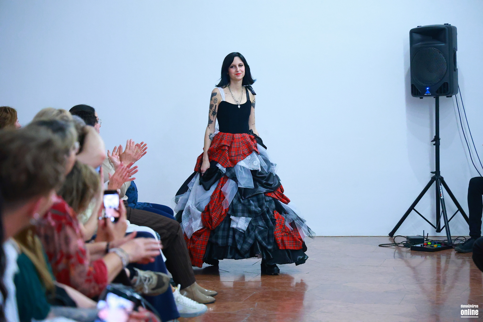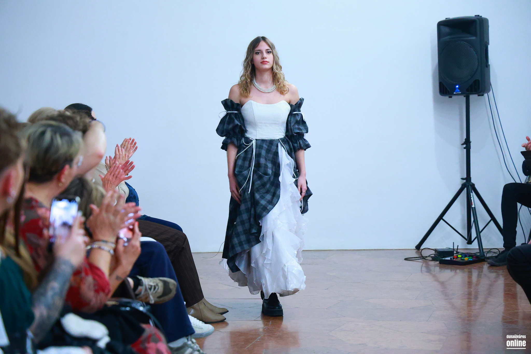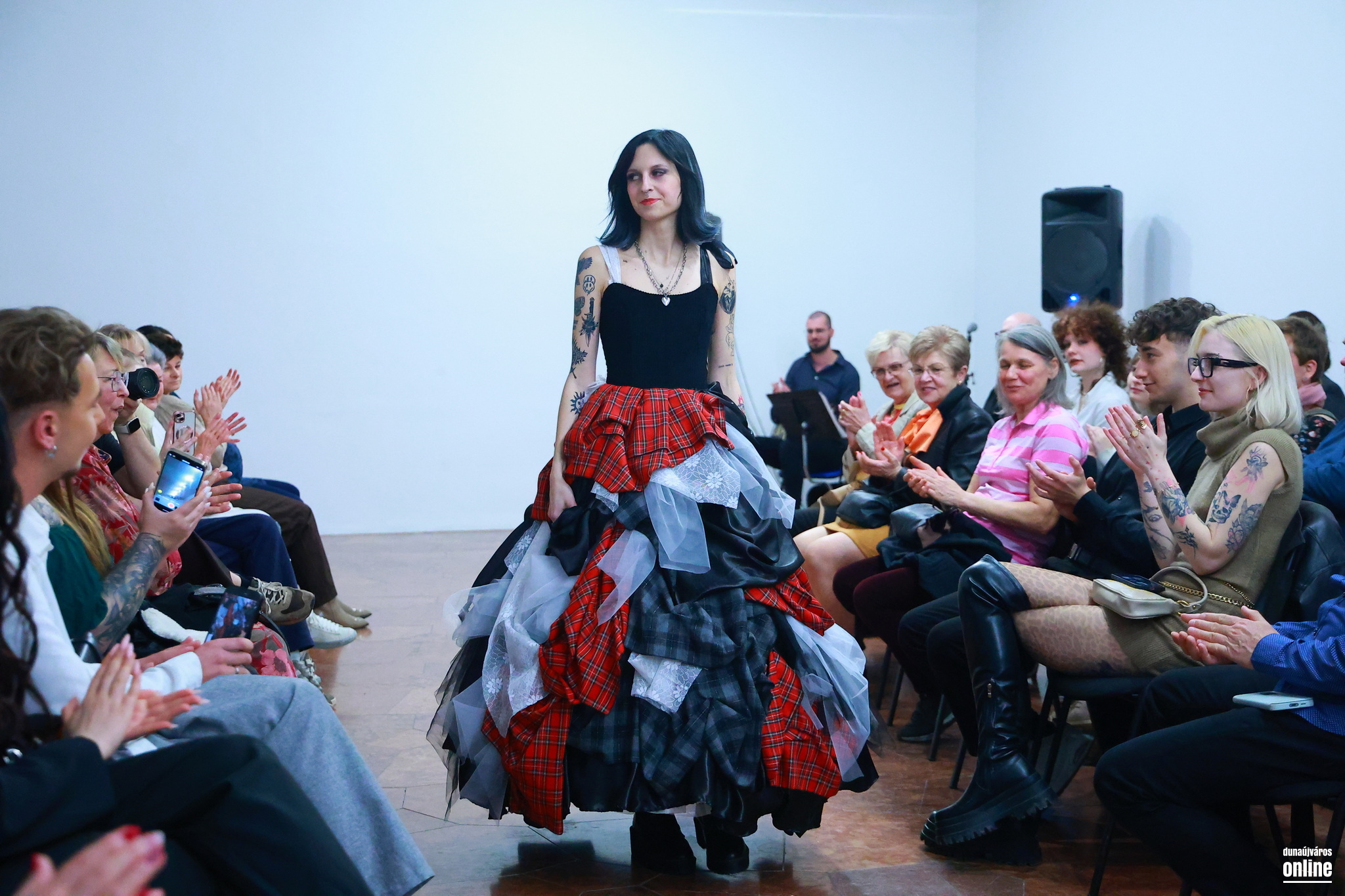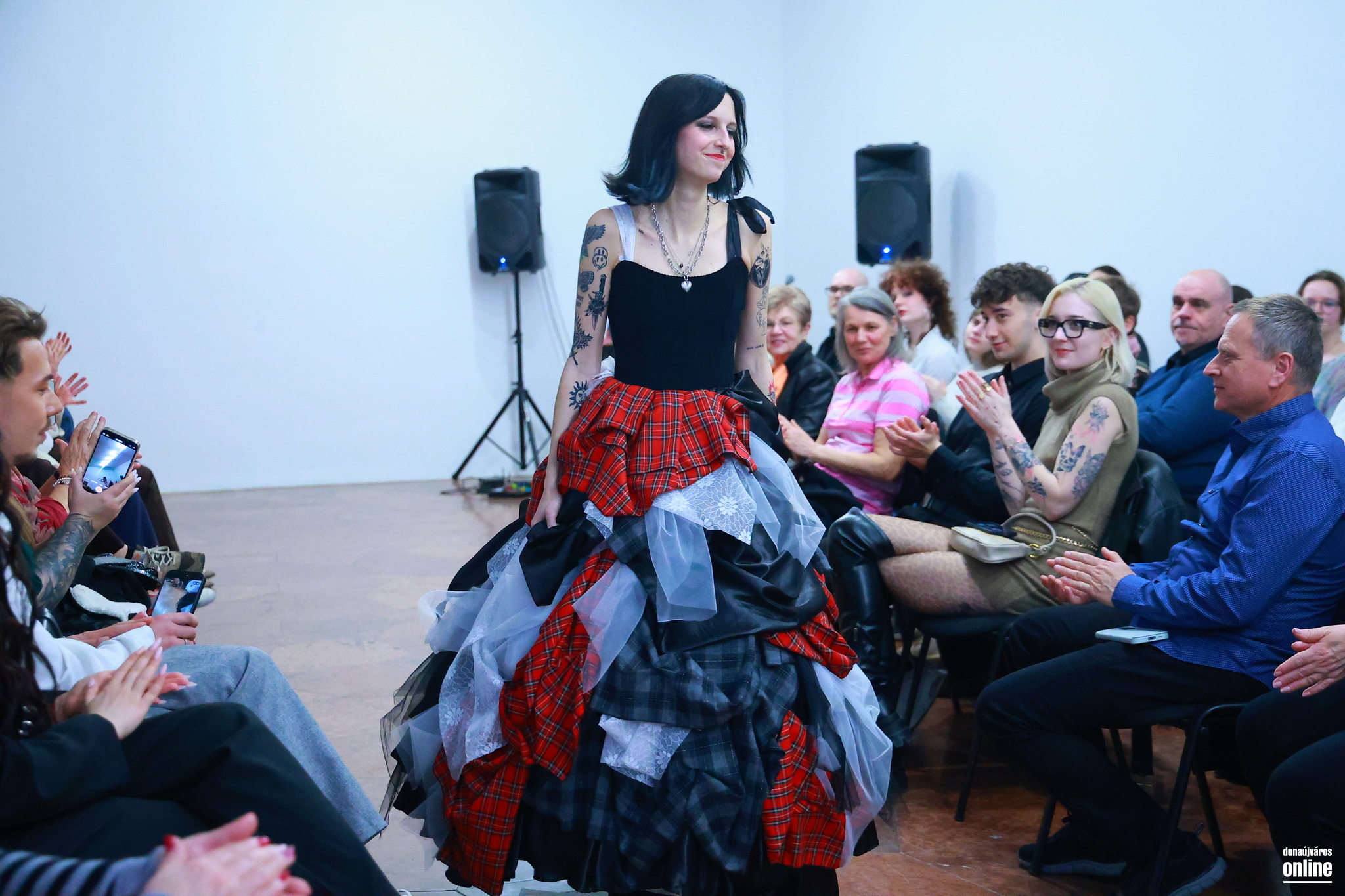 A sötét, határozott mintájú szövetek és a könnyed, légies csipkék találkozása jelképezte az életét és személyiségét jellemző kontrasztot és kettősséget – kollégánk, Veres Viktória kollekciójának bemutatójára várták a Kortárs Művészeti Intézet (ICA-D) vendégeit pénteken este.