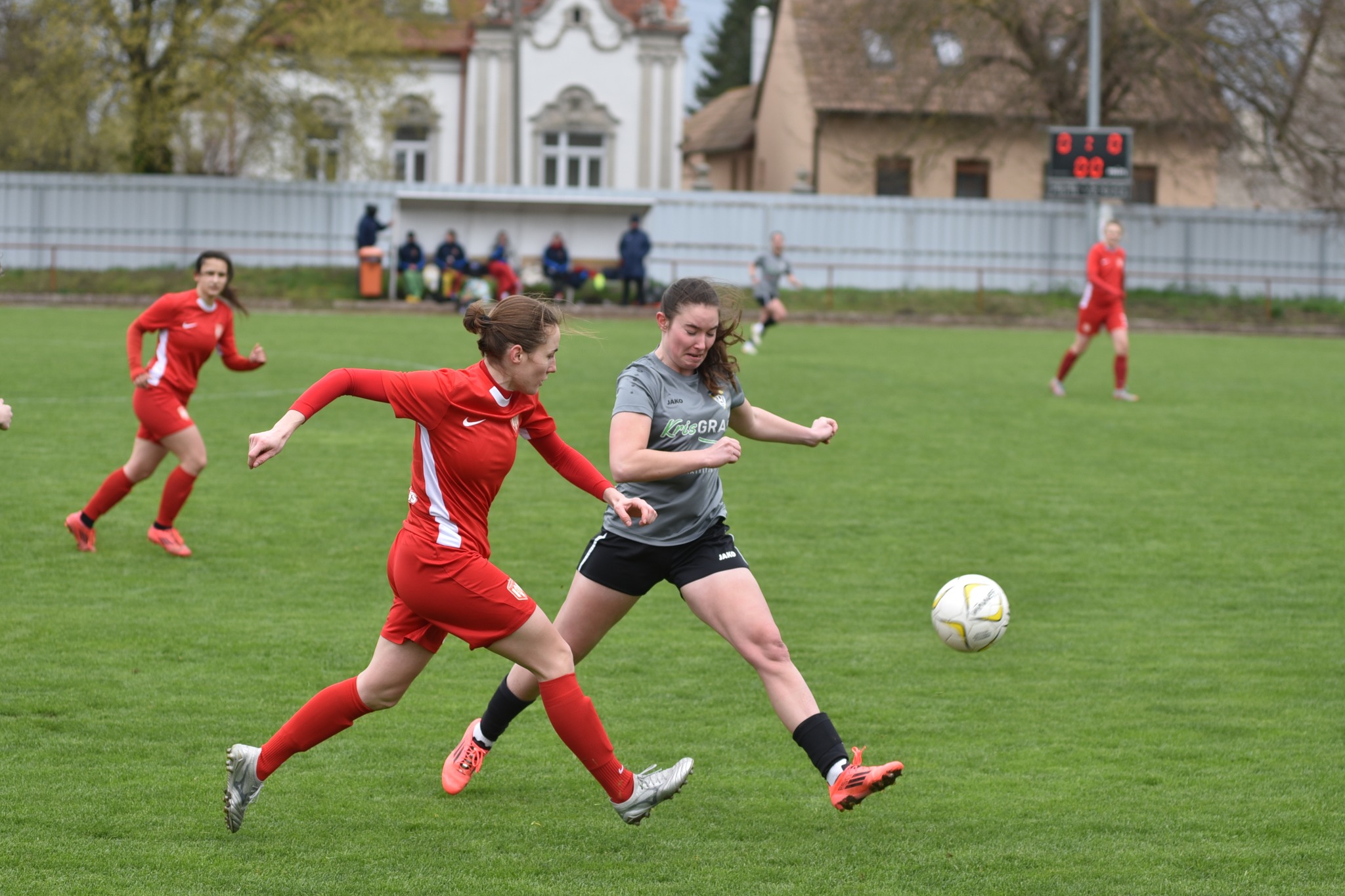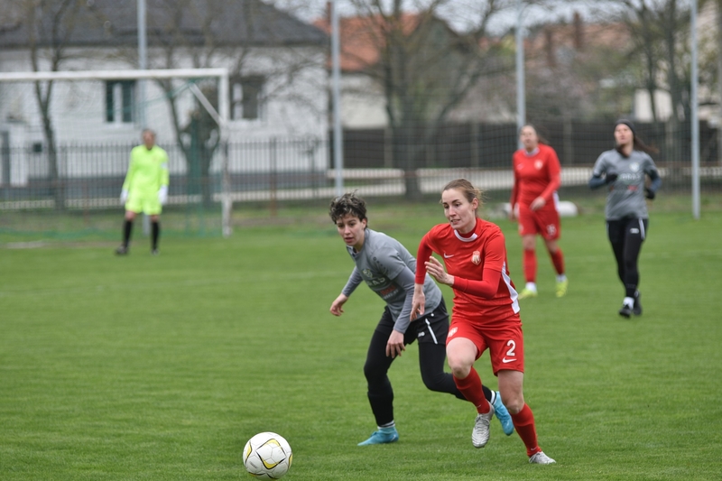 A mieink ennek szellemében vágtak neki a mérkőzésnek és még egy perc sem telt el a találkozóból, amikor Szakállas Noémi elhúzott a jobb oldalon, majd a kapu elé törve értékesítette ziccerét, megszerezve ezzel a vezetést a DFC-nek (0-1). A folytatás is dunaújvárosi fölényt hozott, s bár a viharos szél alaposan megnehezítette a játékot, a 23. percben jött az újabb találat Véninger Tünde révén, így a szünetre már 2-0-s vendég előnnyel vonultak a felek.